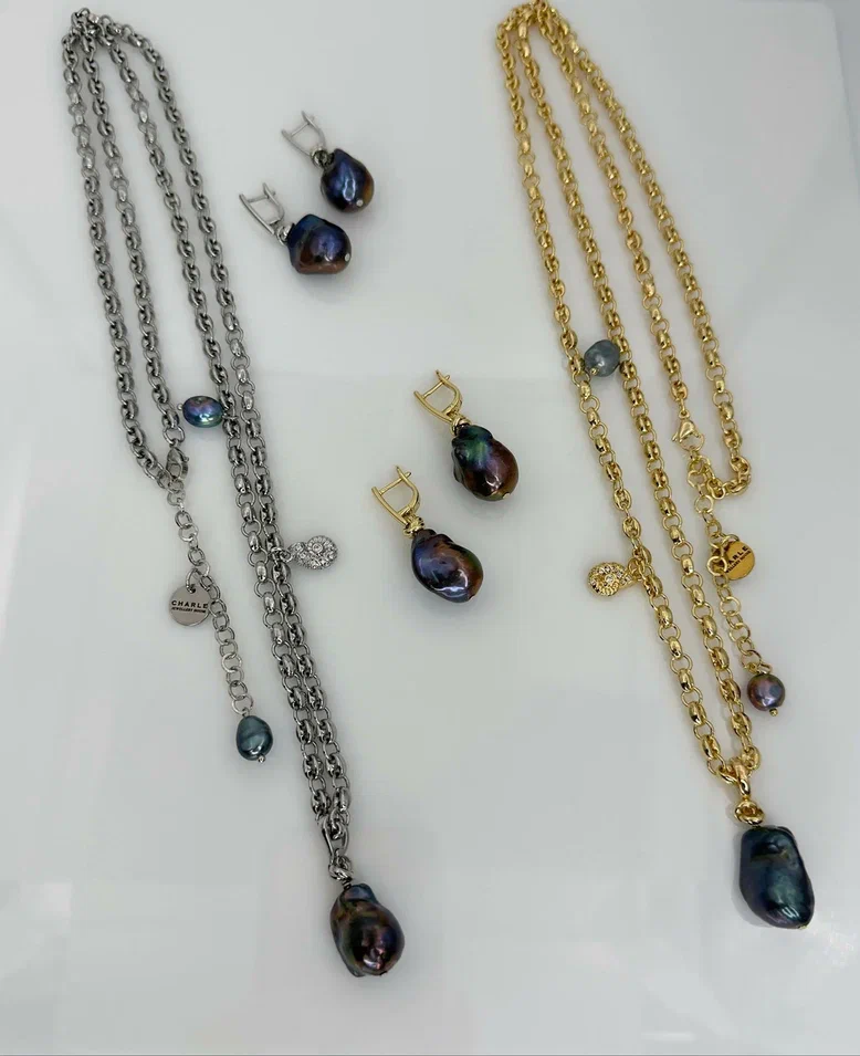Серьги "Арко" жемчуг черный павлин на серебряной швензе. Длина 4 см.