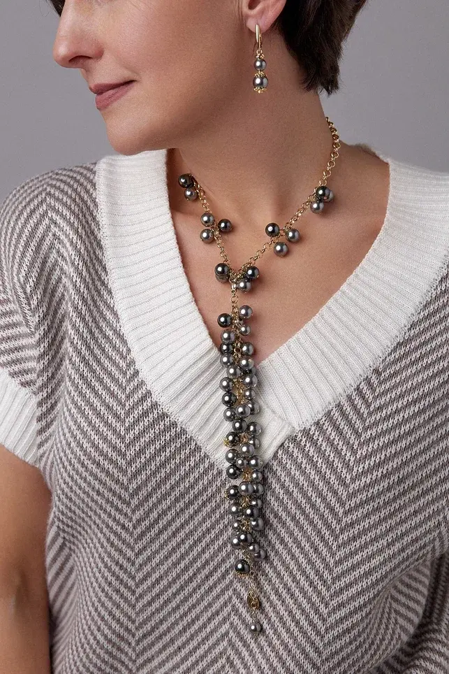 Серьги Currant серый жемчуг, оттенок золото. Английский замок. Длина 4 см.