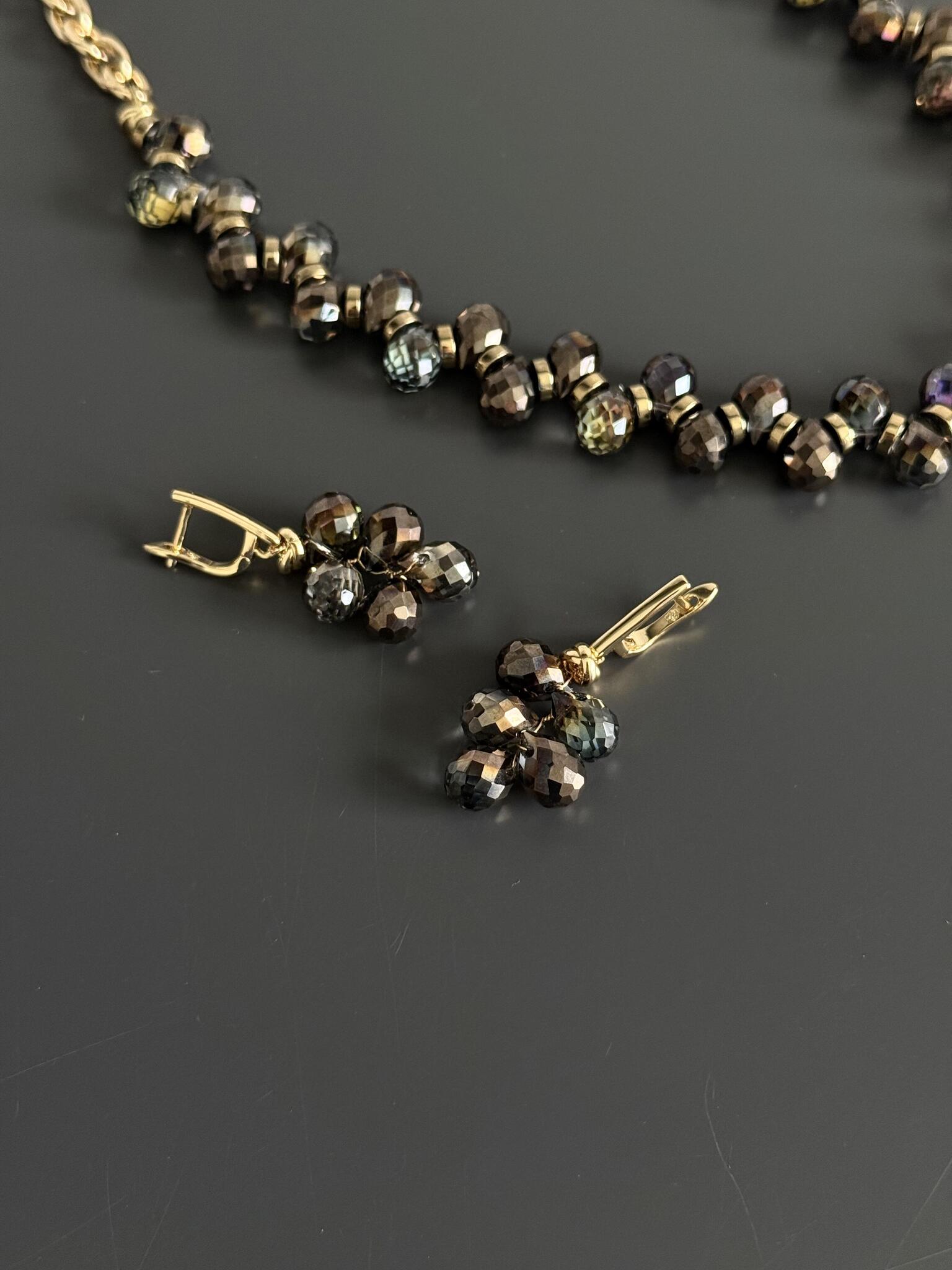Серьги "Деора" - шоколадный чешский хрусталь, оттенок золото. Английский замок. Длина сережки вместе с застежкой 4 см.