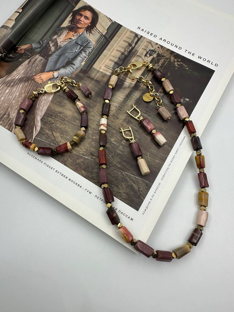 Серьги из яшмы мукаита и гематита, оттенок золото