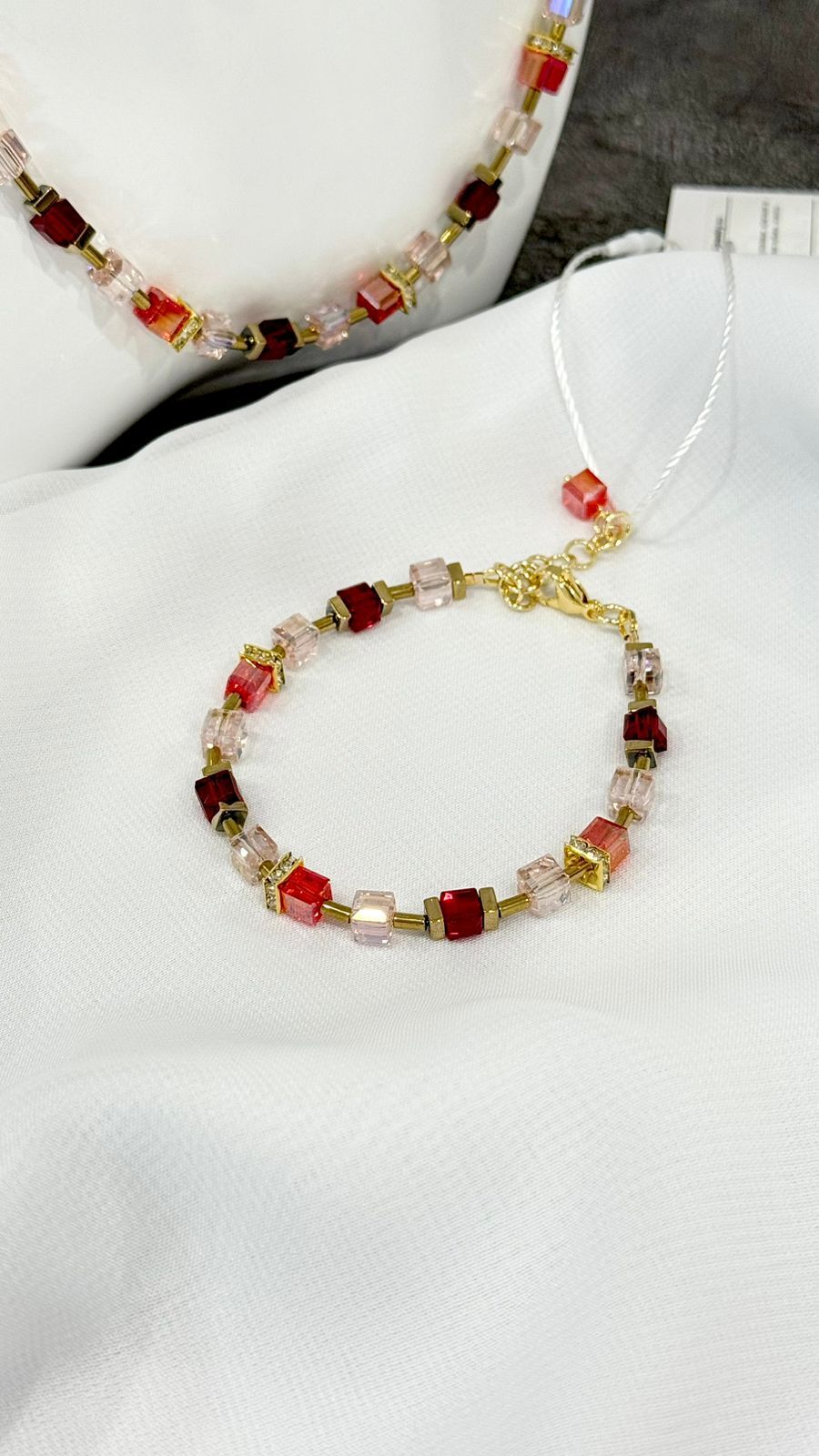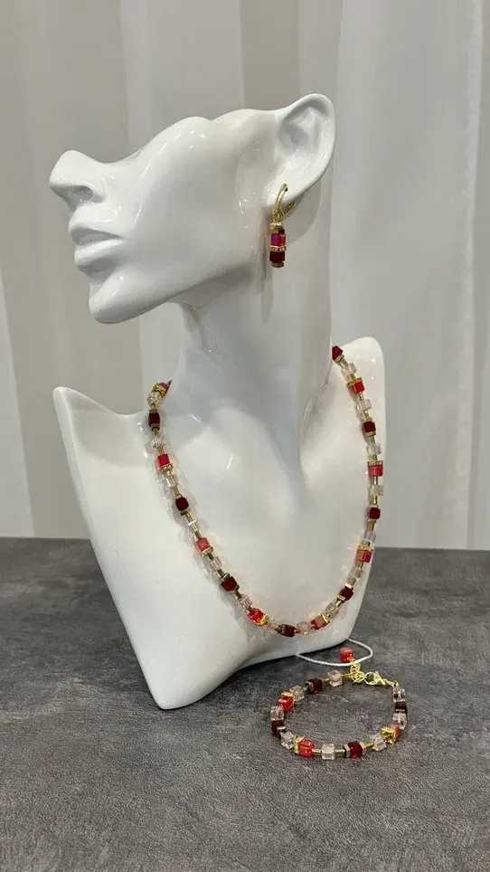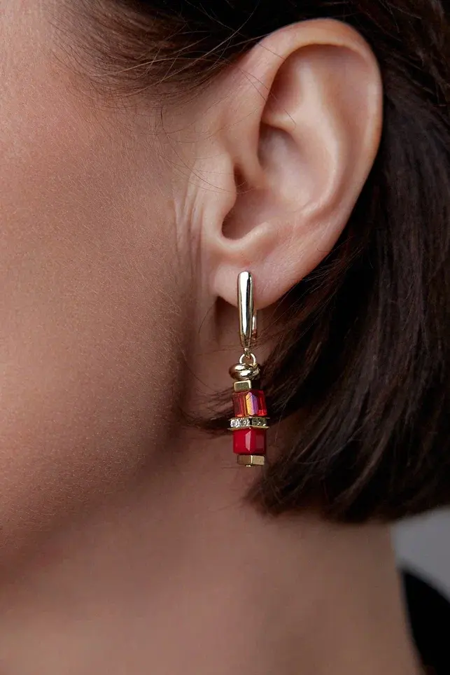 Серьги красные и бардовые кубики, золото. Английский замок. Длина сережки вместе с застежкой 3,5 см.