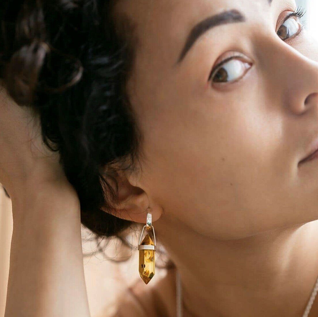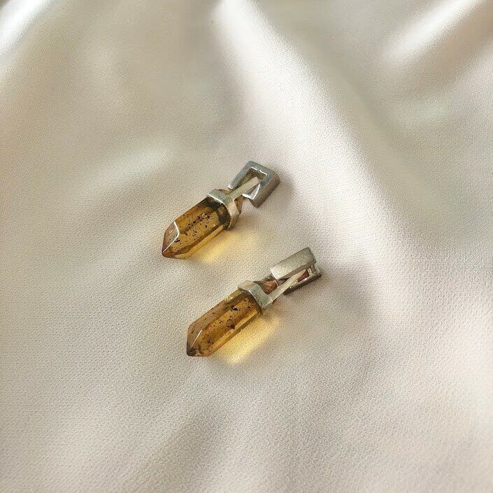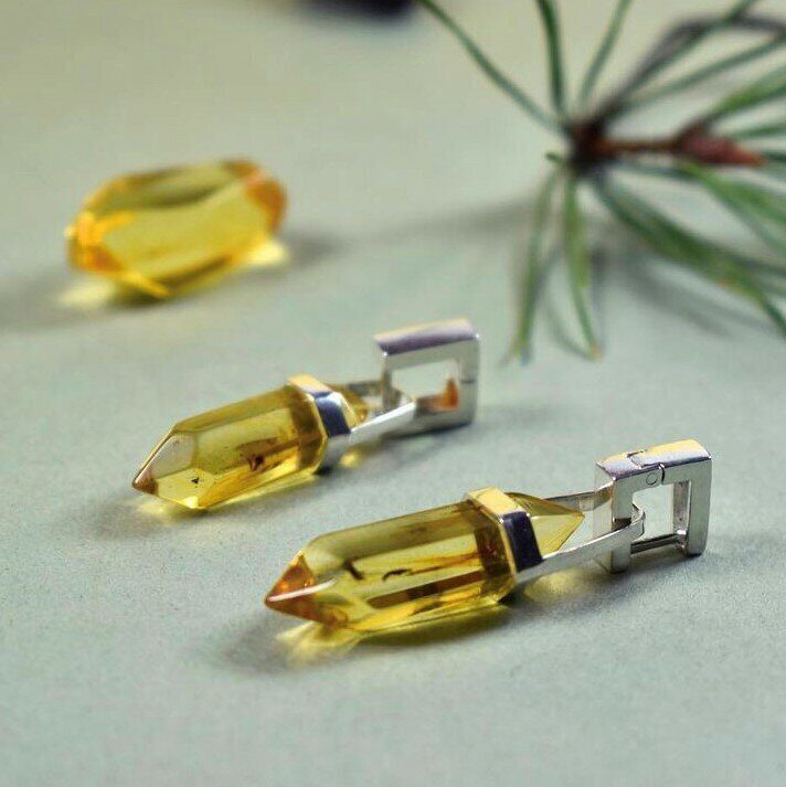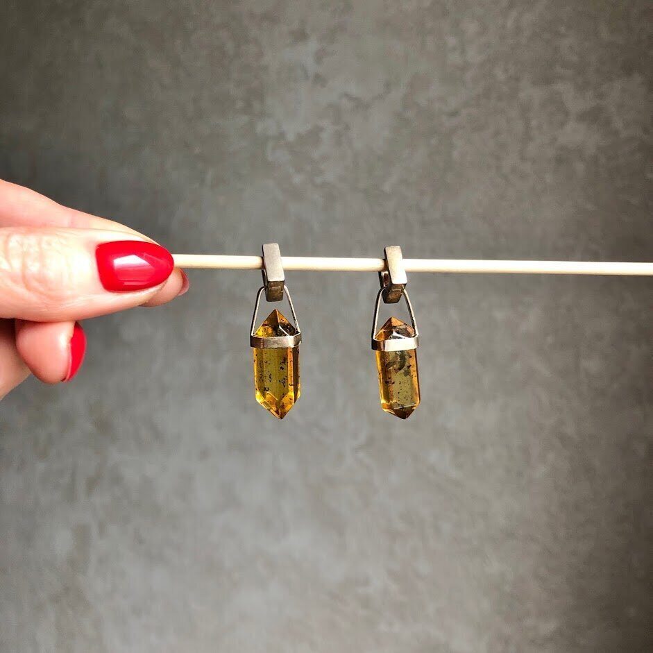 Серьги трансформеры "Кристаллы" темные, серебро 925, натуральный янтарь.