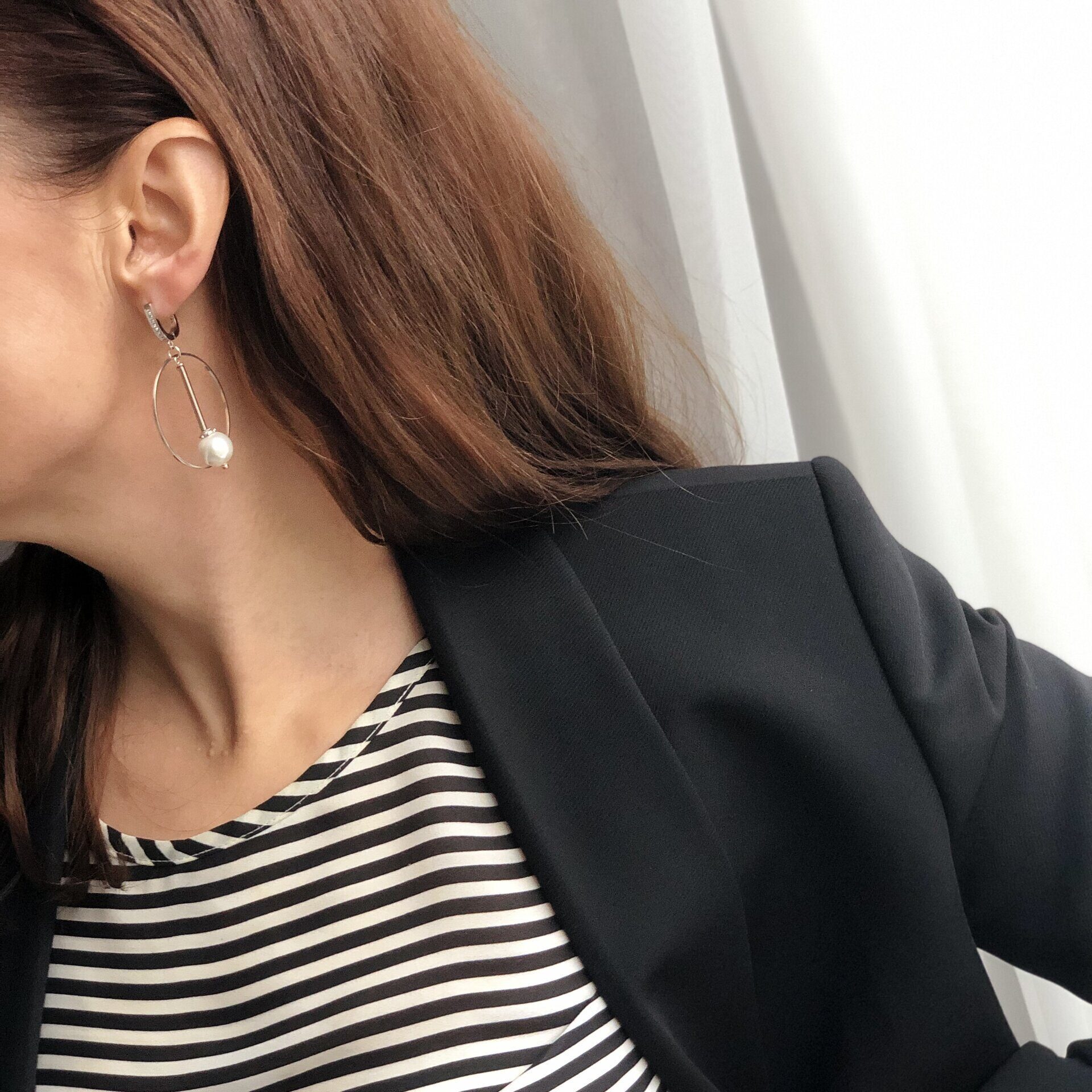 Серьги на английском замке круг с жемчужиной на палке, цвет серебро, Италия