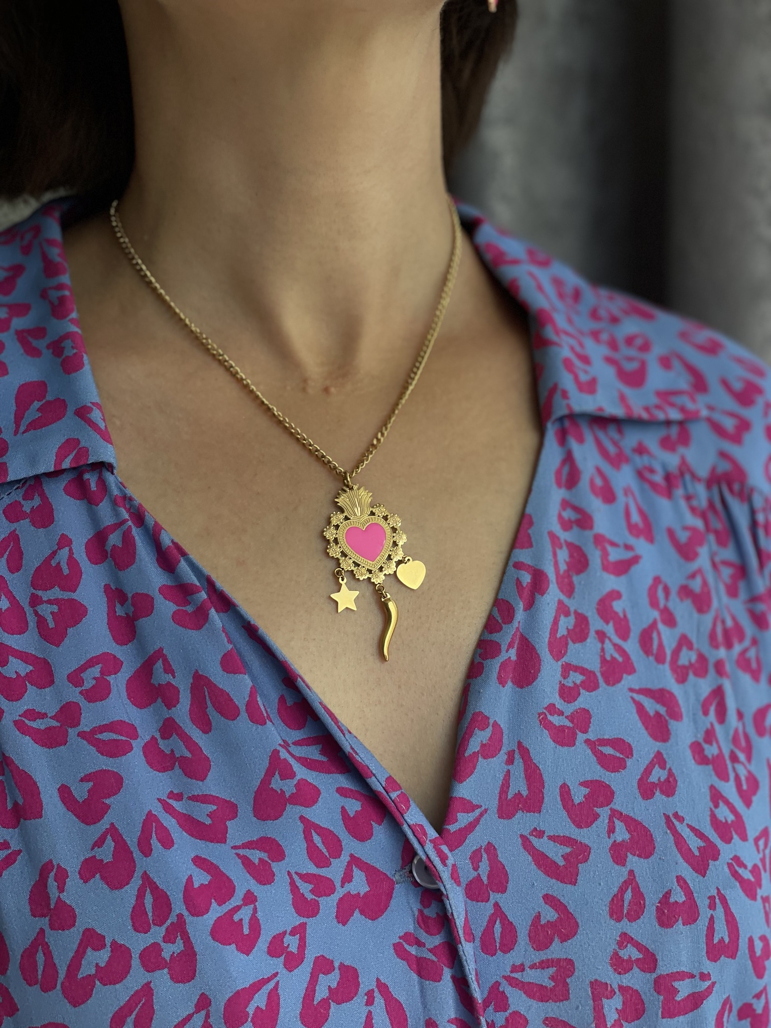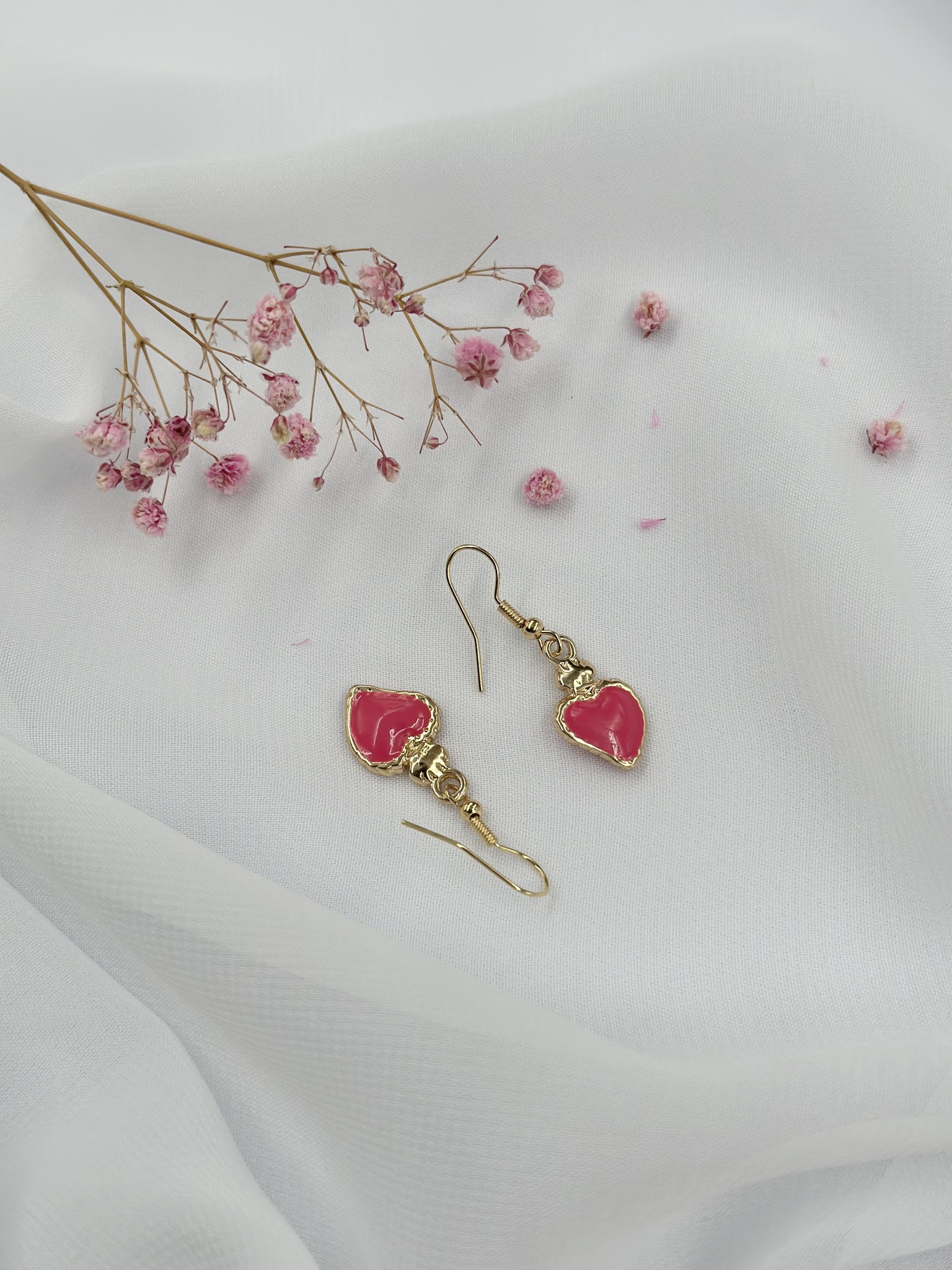 Серьги маленькие сердца с розовой эмалью на петле, оттенок золото.