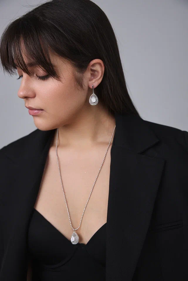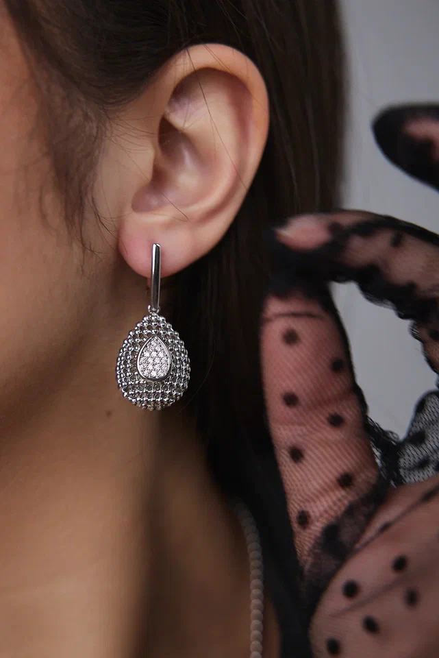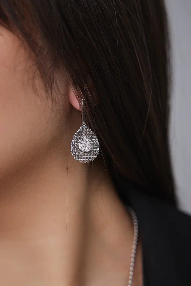 Серьги "Милора" капля с цирконами, оттенок серебро