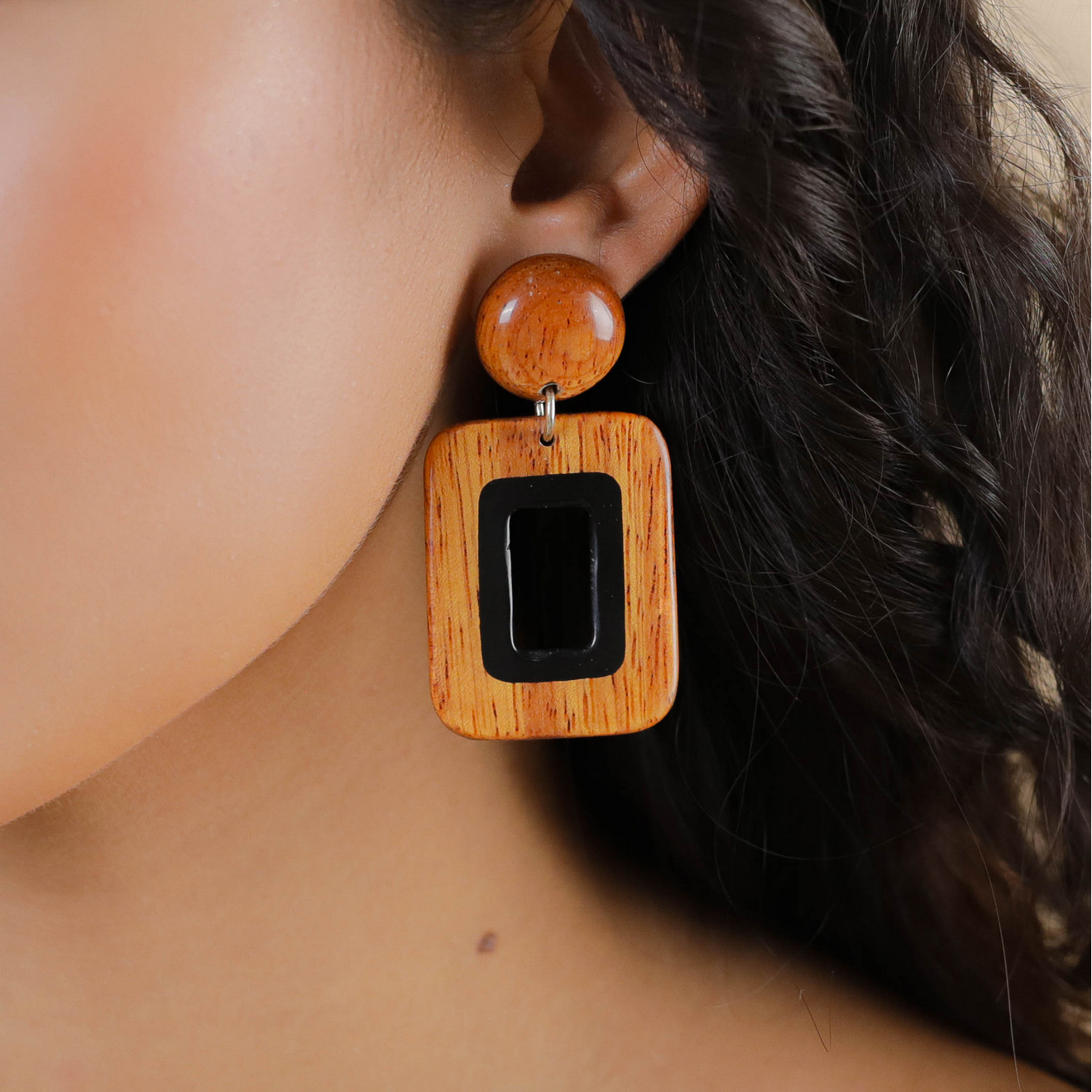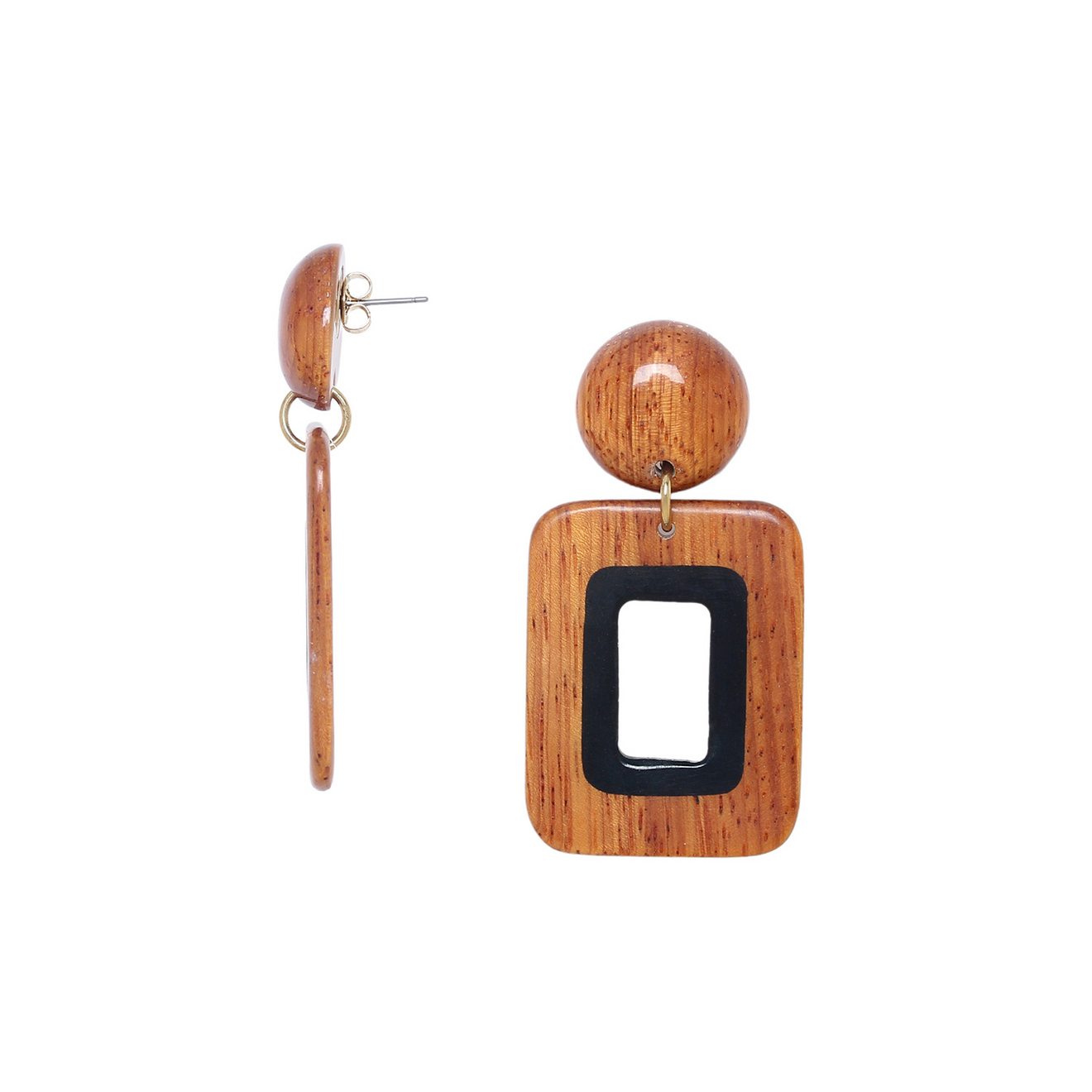 Серьги-пусеты Nature Bijoux, Cannelle, с рогом и деревом байонг