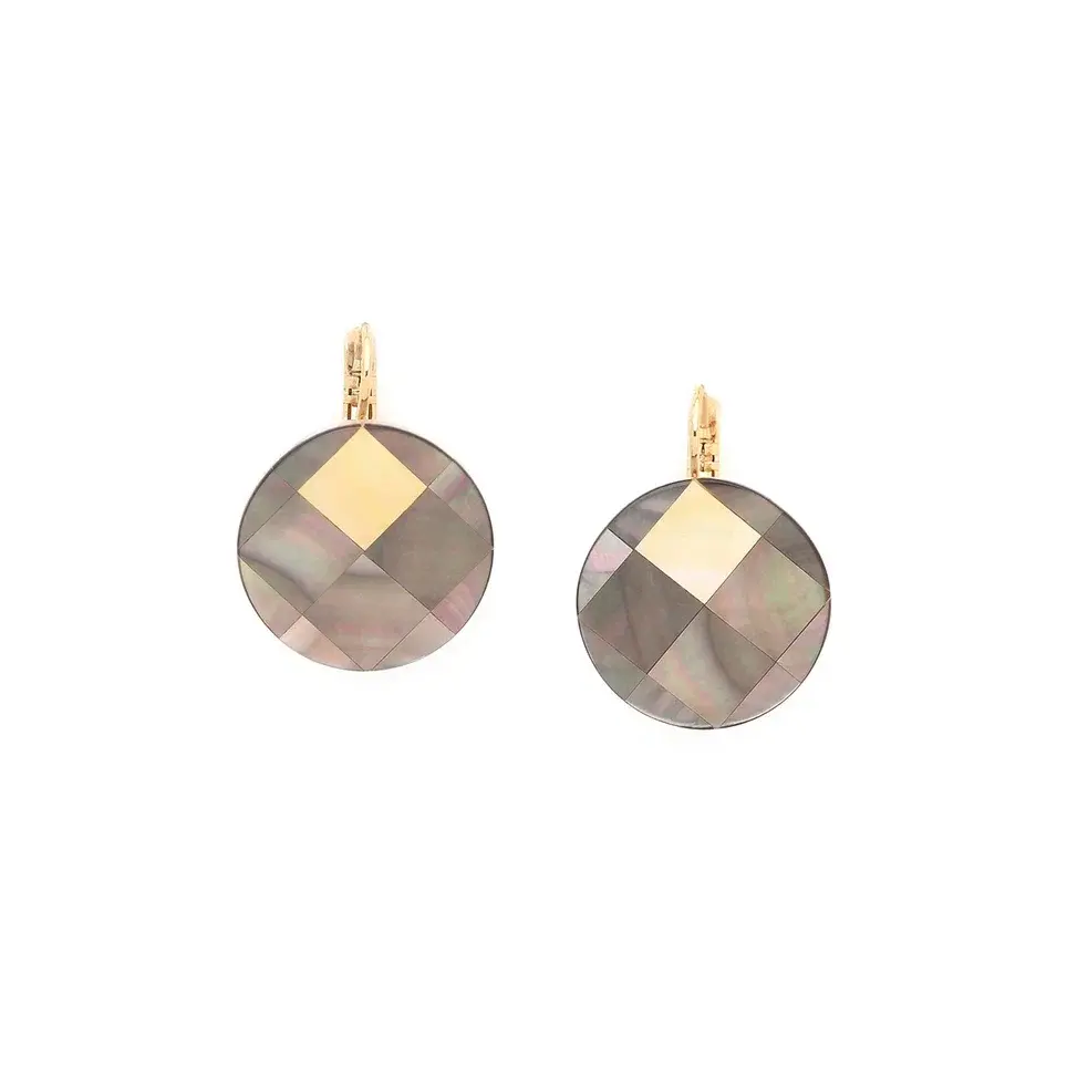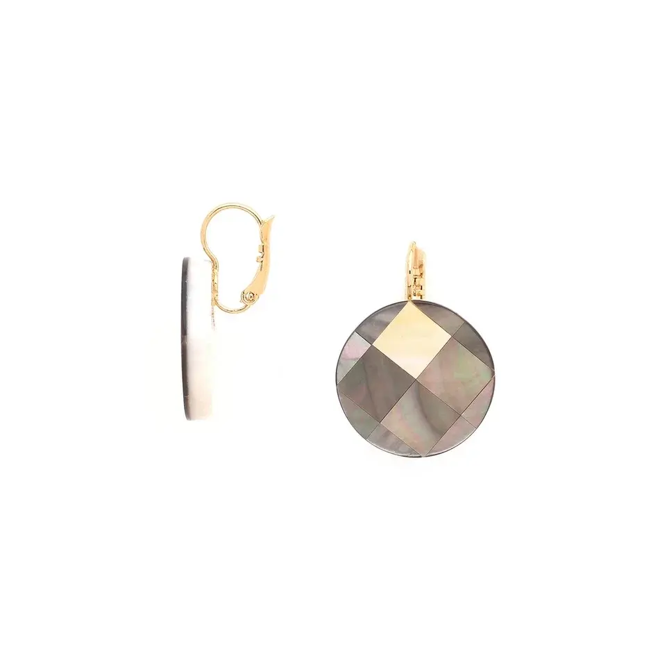Серьги с серой перламутровой мозаикой. Замок каталонский.