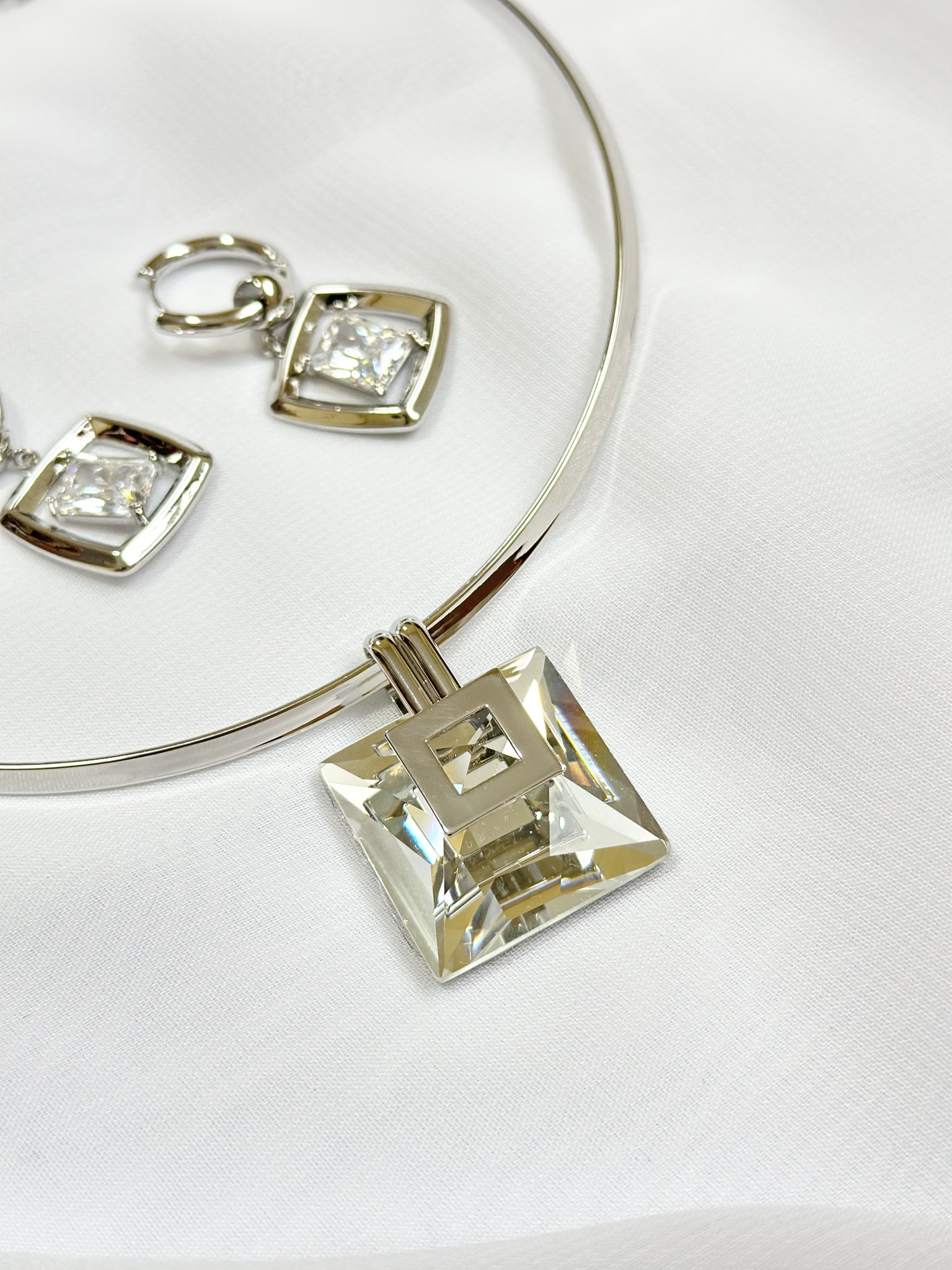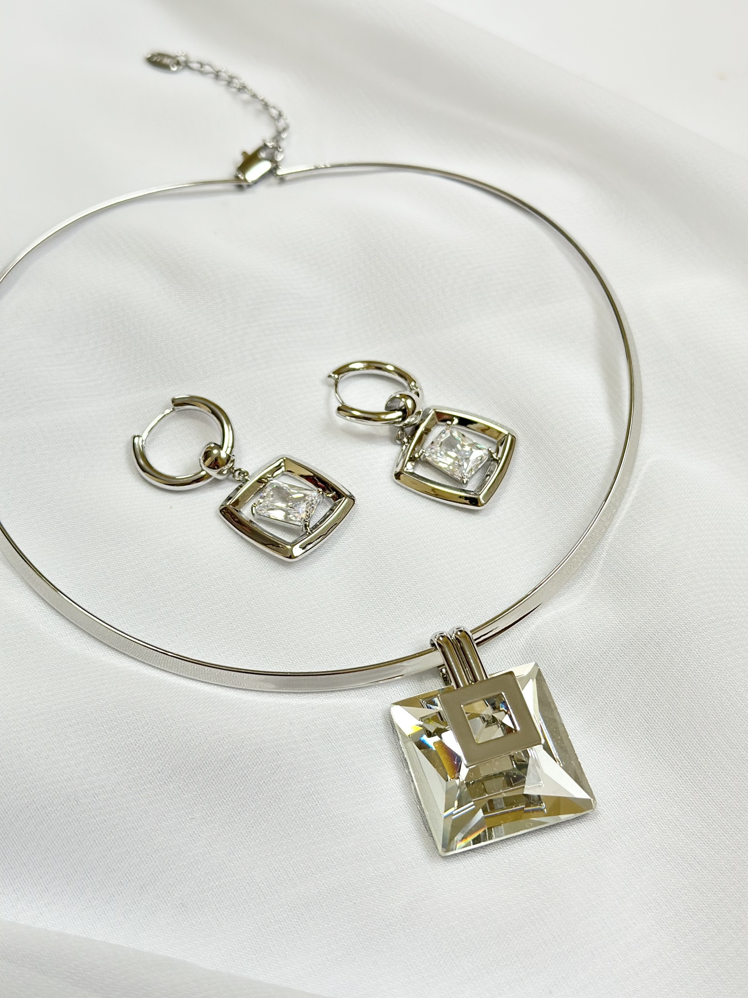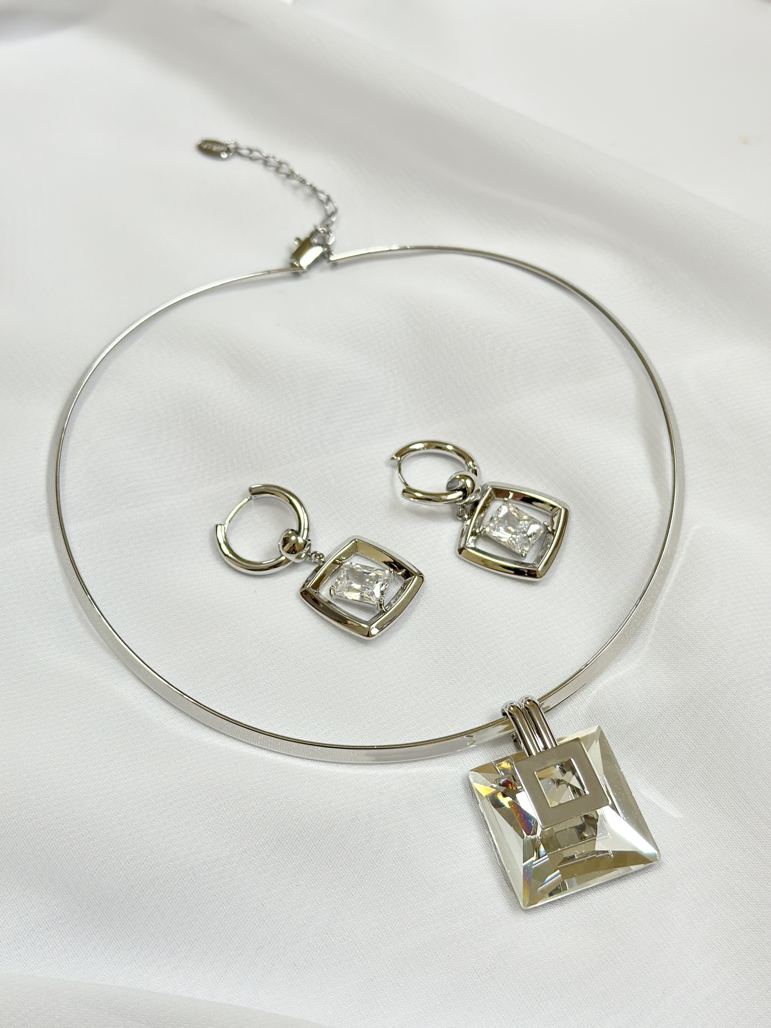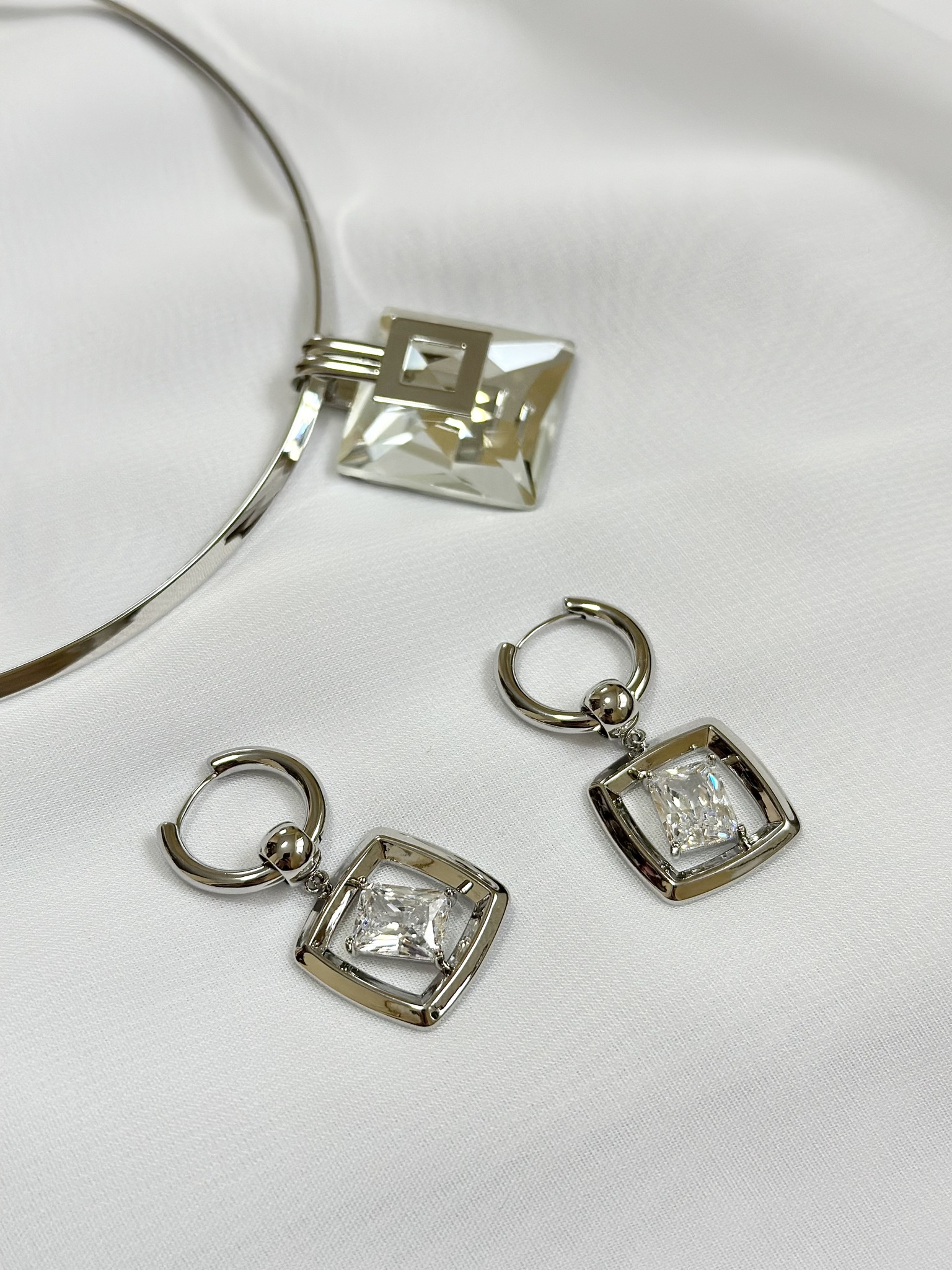Серьги-трансформеры прозрачный прямоугольный кристалл в серебряном квадрате, замок скоба. Кристалл съемный, поэтому серьги можно носить и как лаконичный вариант конго. Длина 4 см. Подвес-кристалл 2 х 2 см. Кольцо 2 см в диаметре.