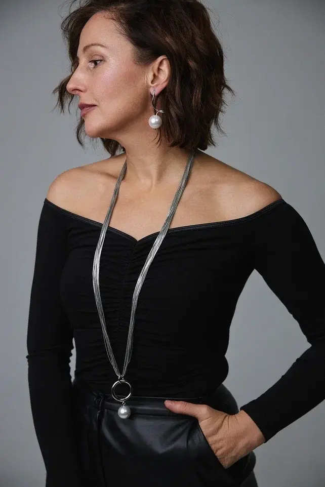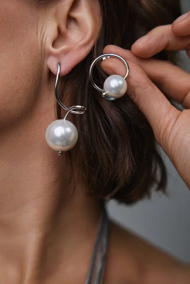 Серьги пусеты асиммметричные с жемчужинами и горным хрусталем
