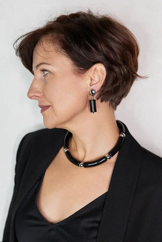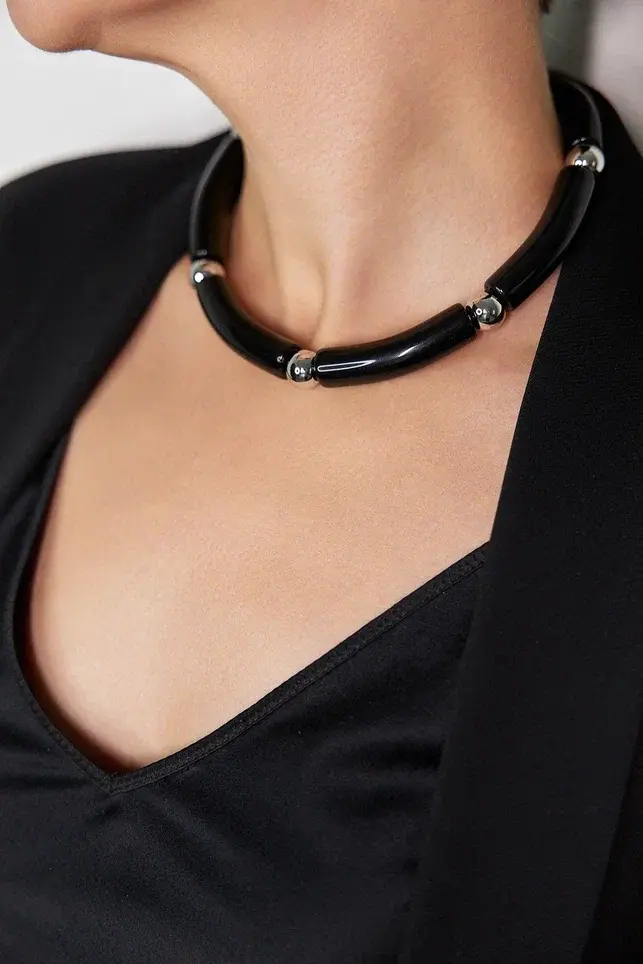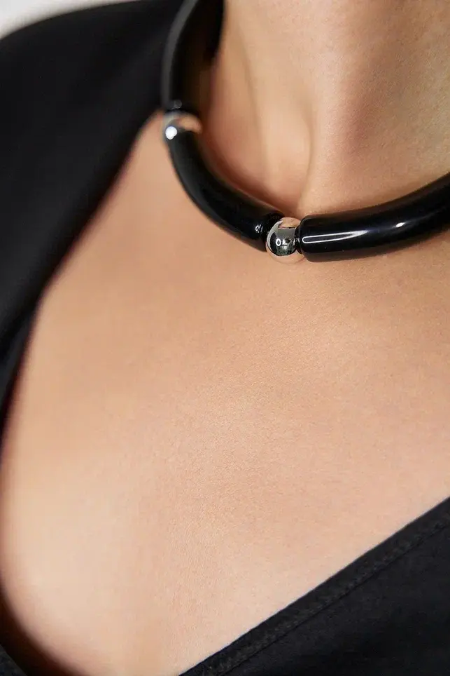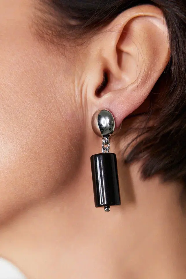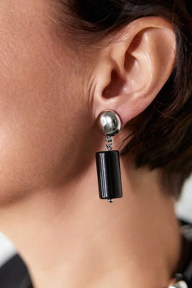 Серьги пусеты черные пластиковые цилиндры с серебряными шарами
