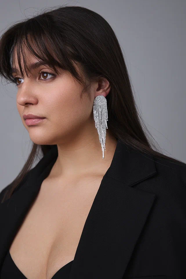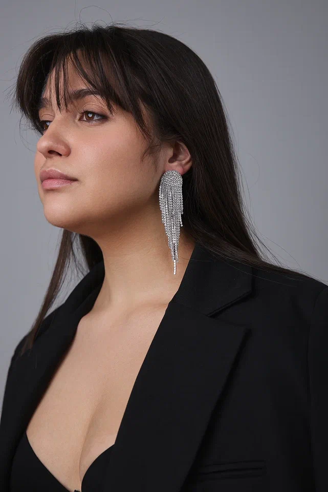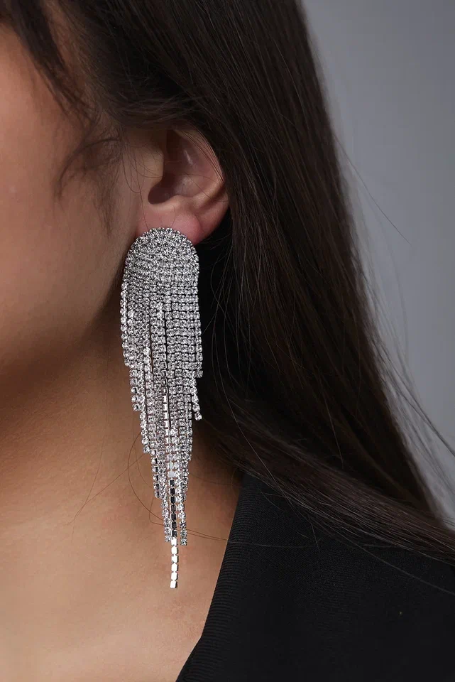 Эти серьги выделяются своим изысканным дизайном, напоминая о грации крыльев, а белые стразы в серебряной оправе придают им невероятное сияние.