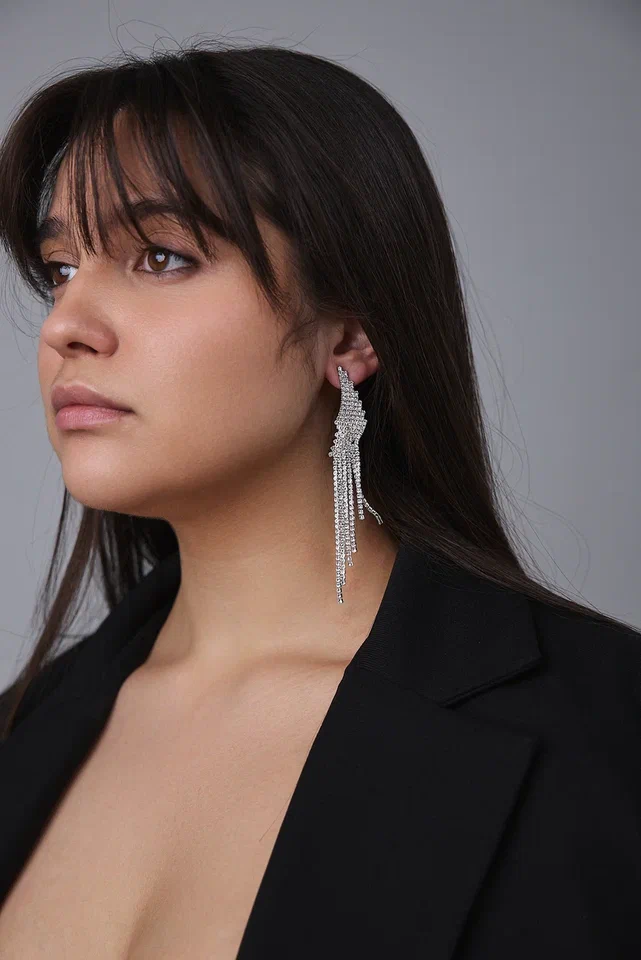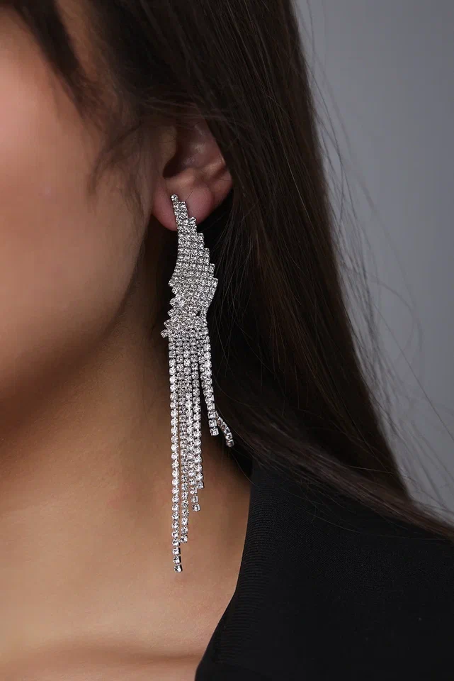 Эти серьги выделяются своим изысканным дизайном, напоминая о грации крыльев, а белые стразы в серебряной оправе придают им невероятное сияние.