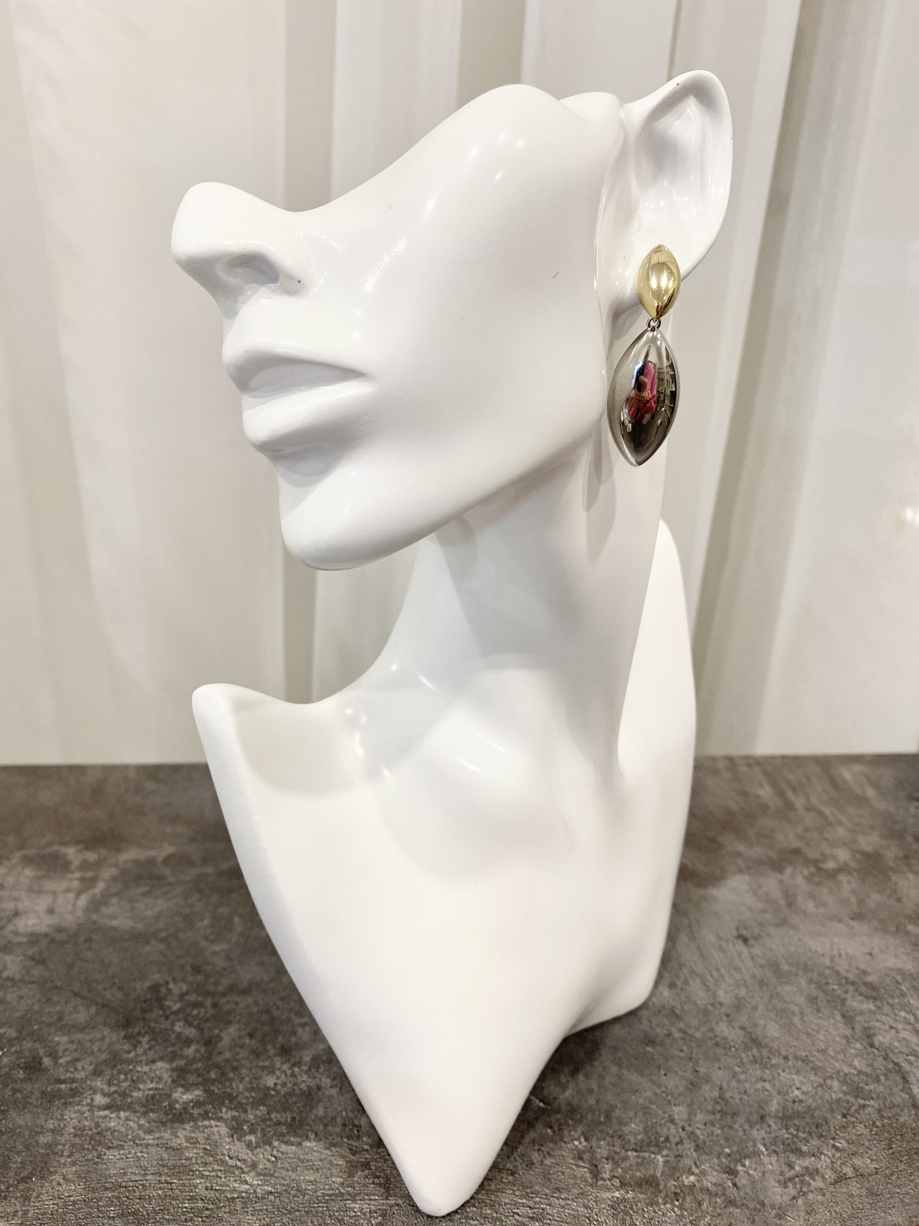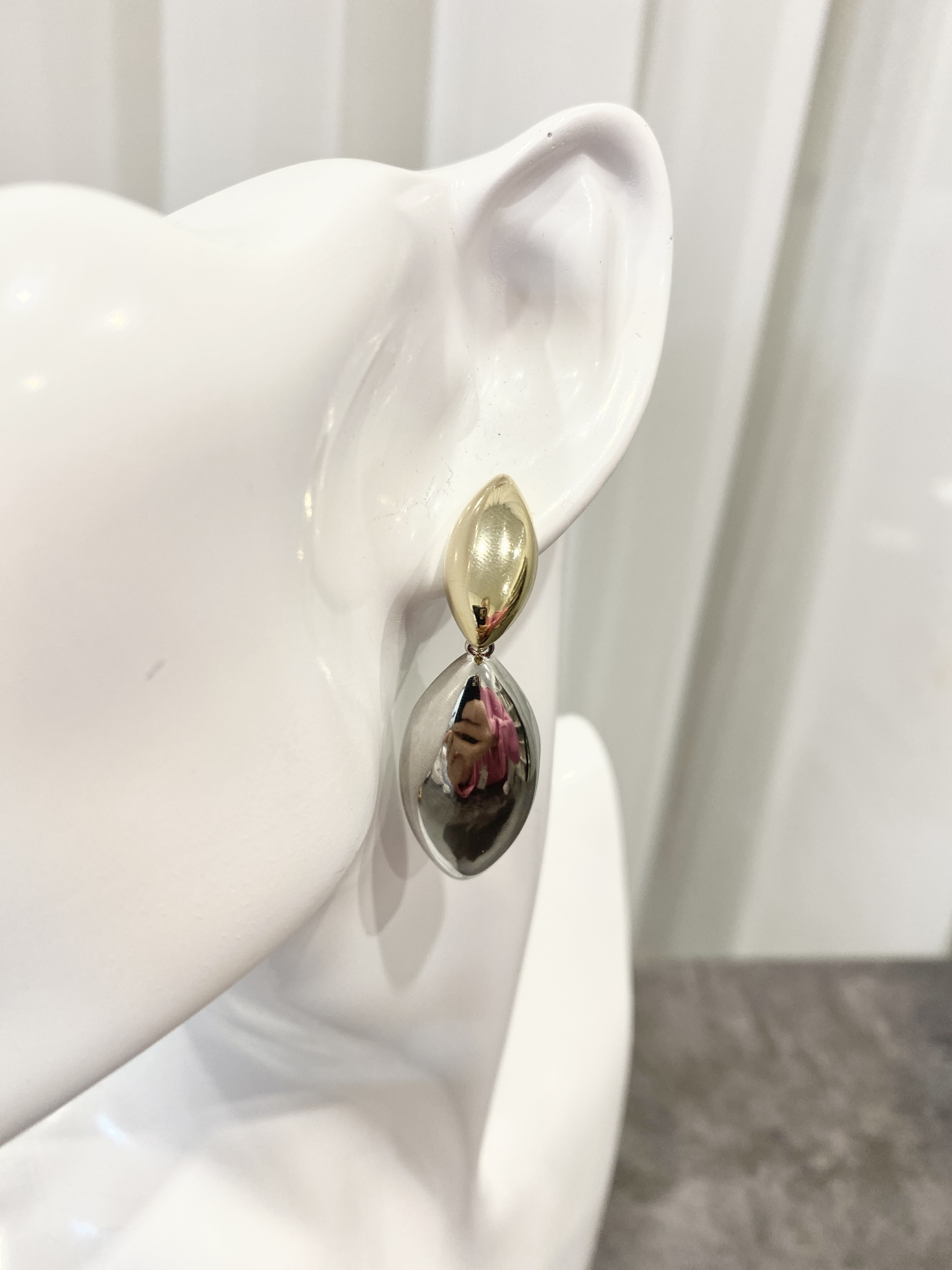 Серьги пусеты двойные капли, оттенок серебро и золото