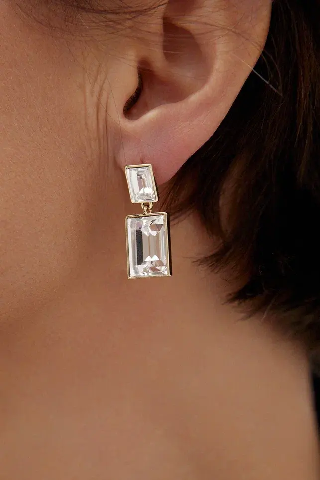 Серьги пусеты двойные прямоугольники в серебряной рамке