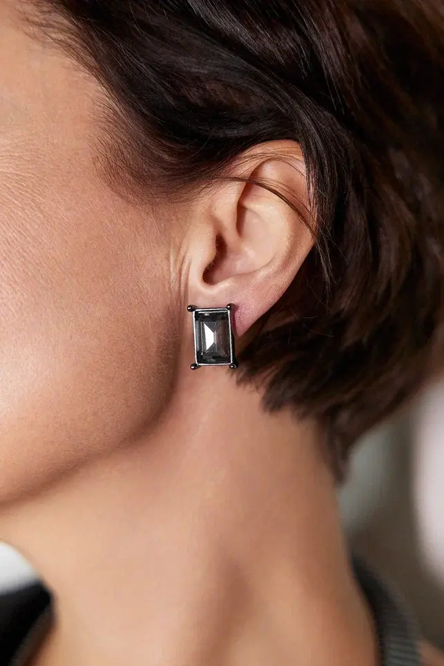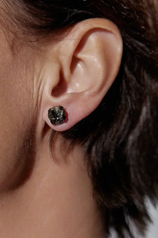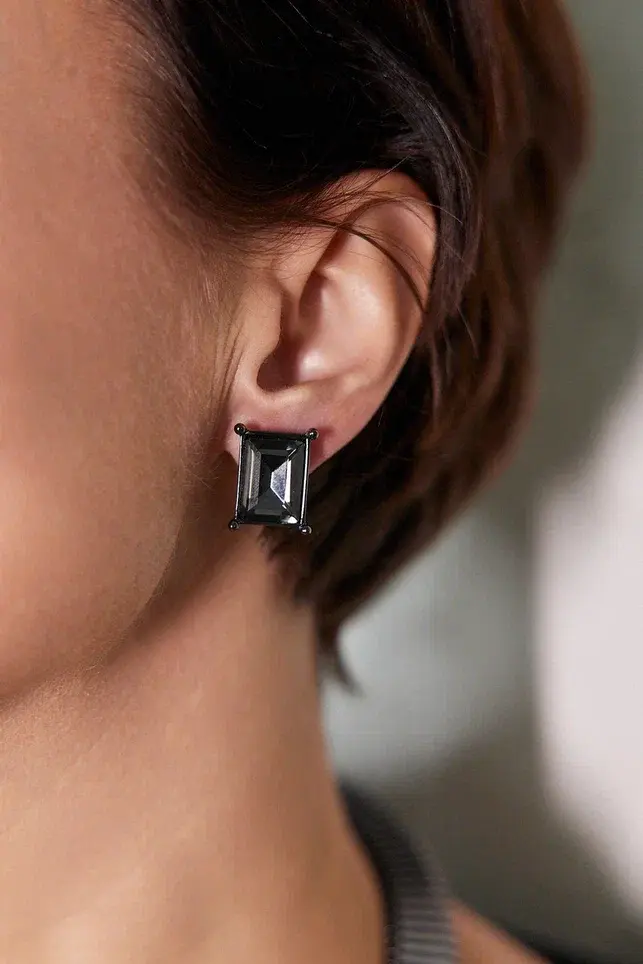 Серьги пусеты графитовые кристаллы в графитовой рамке. Размер 1,5 см х 1 см.