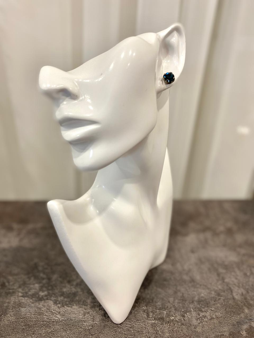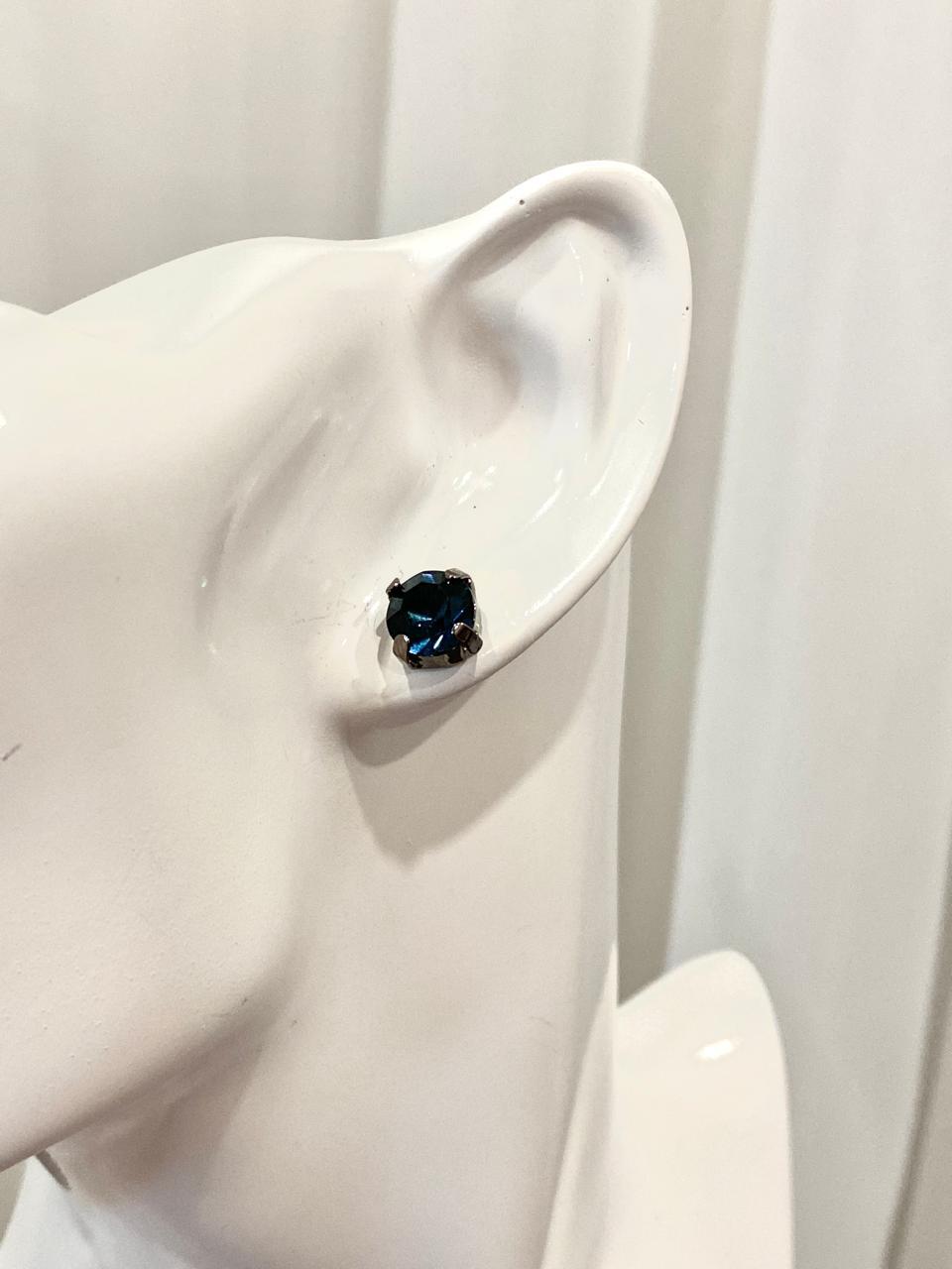 Серьги пусеты круглые синие кристаллы, фурнитура графит