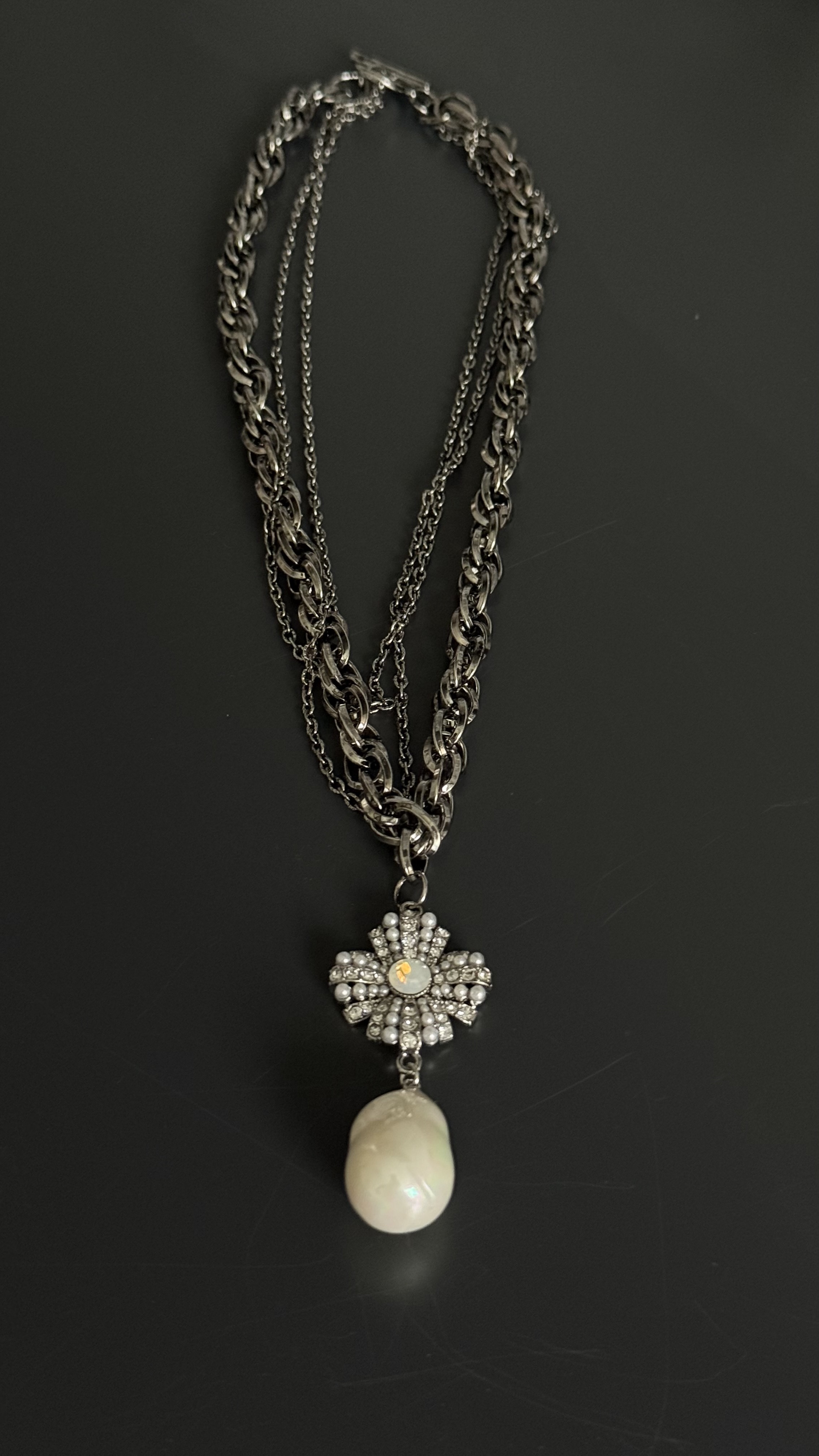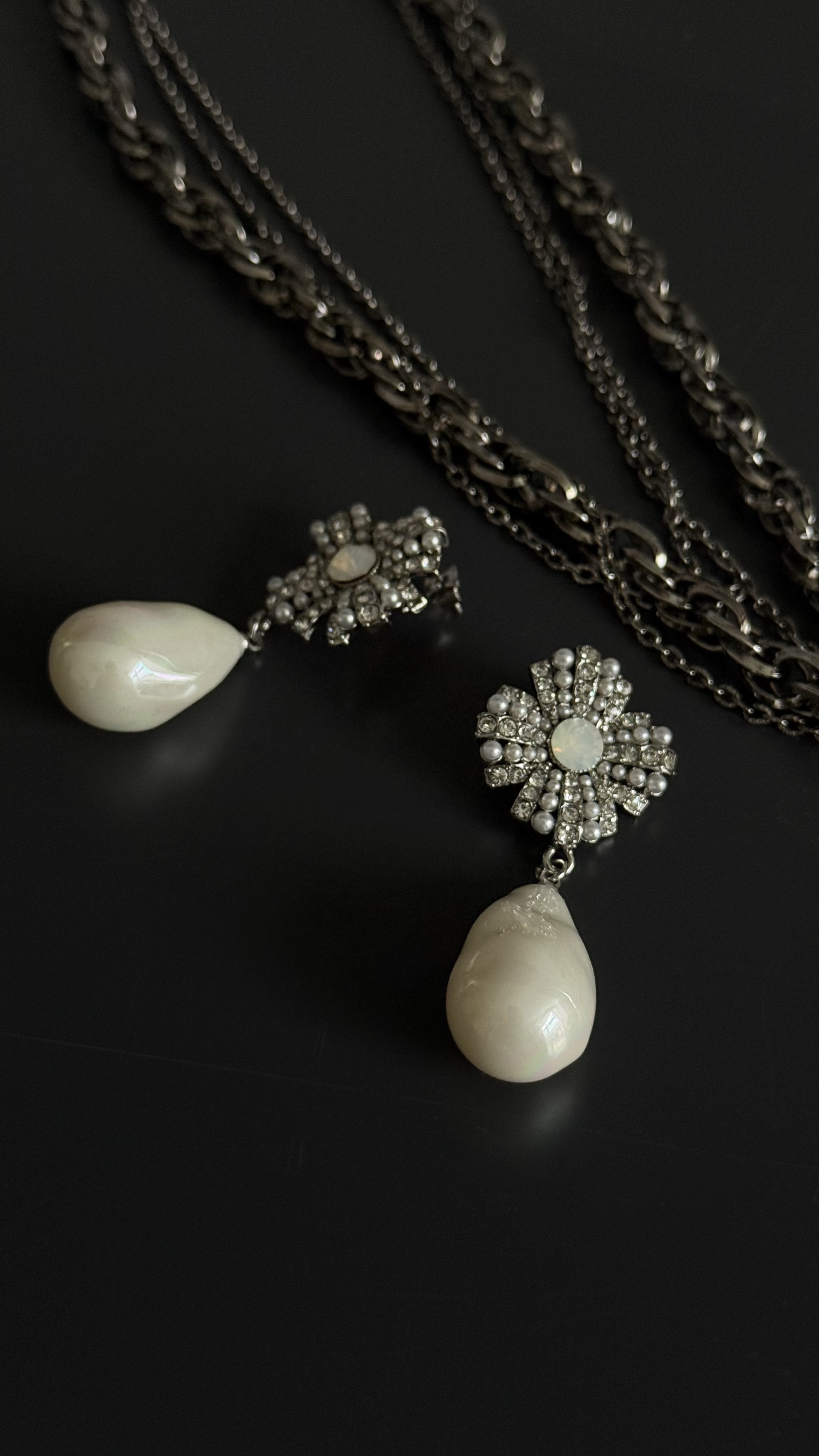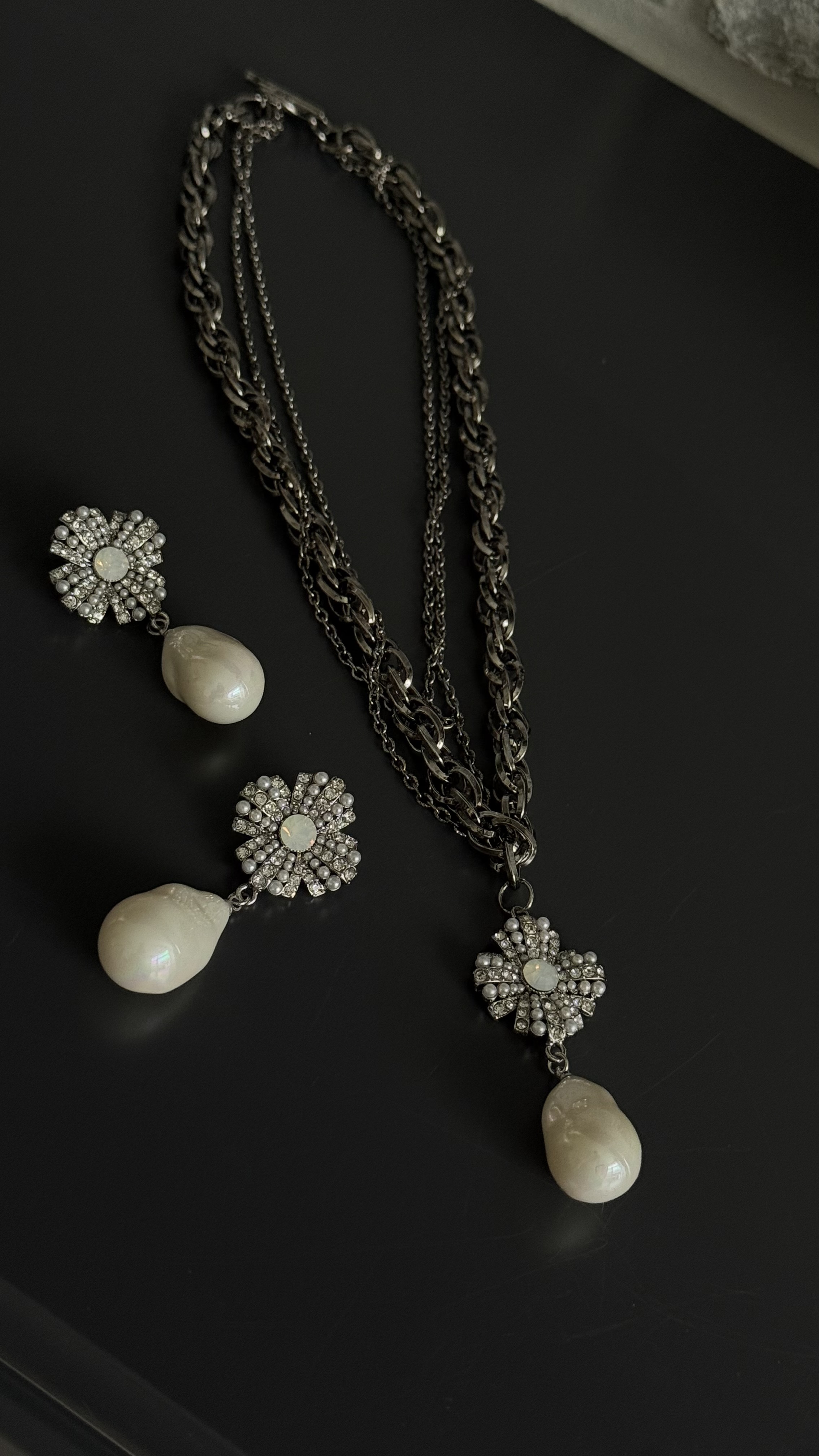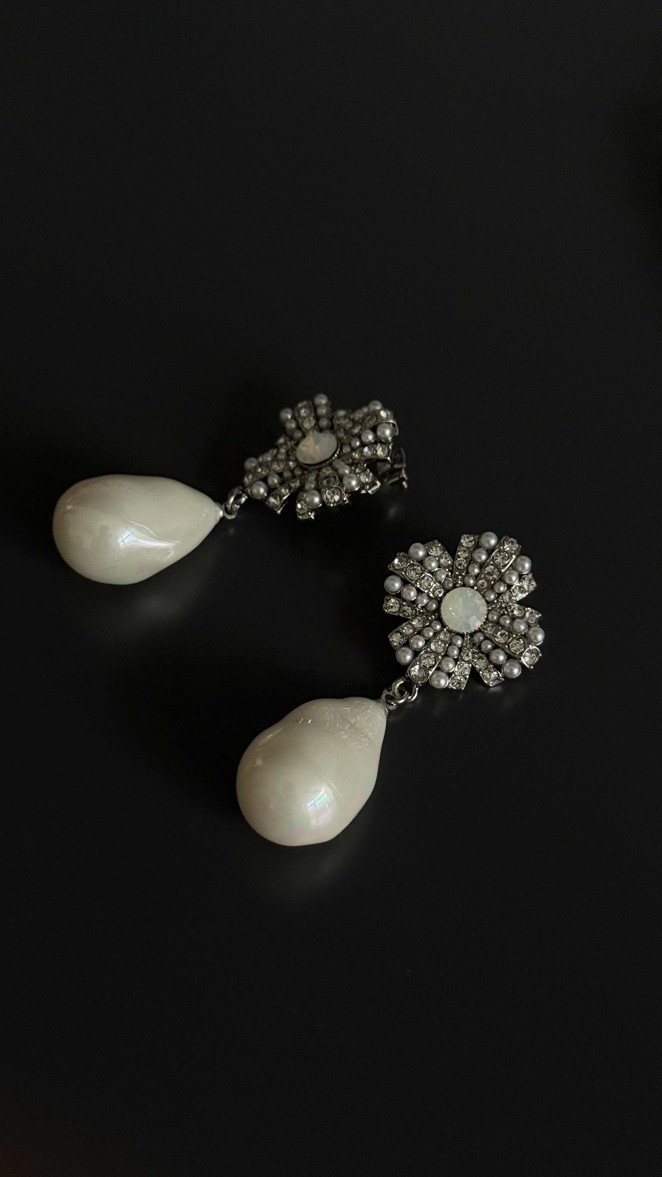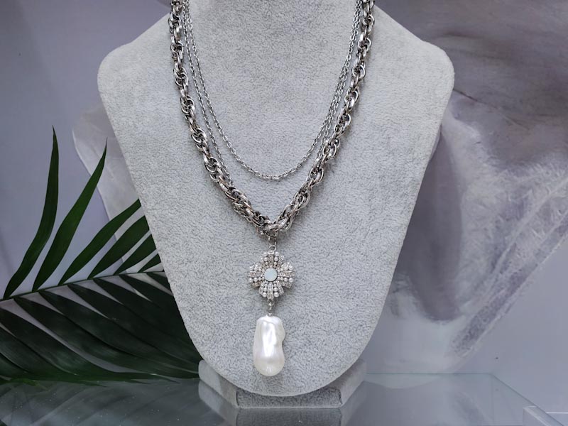 Серьги пусеты орден с каплевидной барочной жемчужиной, оттенок серебро