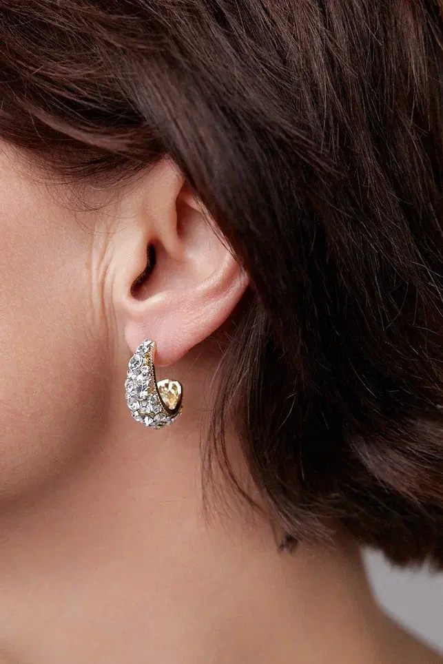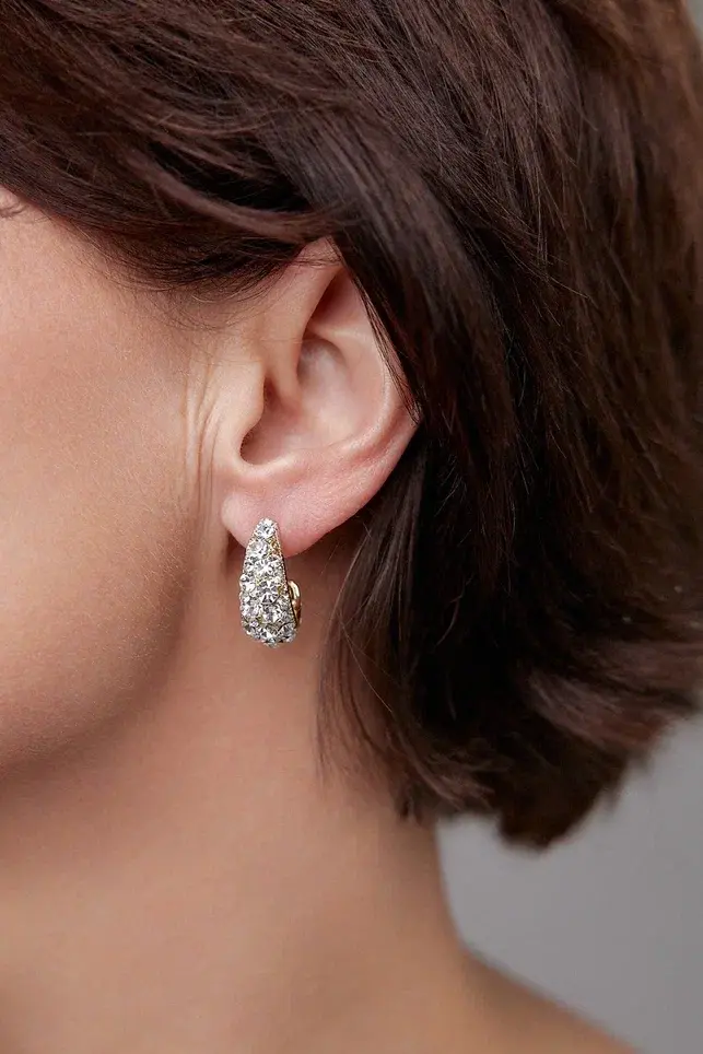 Серьги пусеты с прозрачными кристаллами. Оттенок золото.