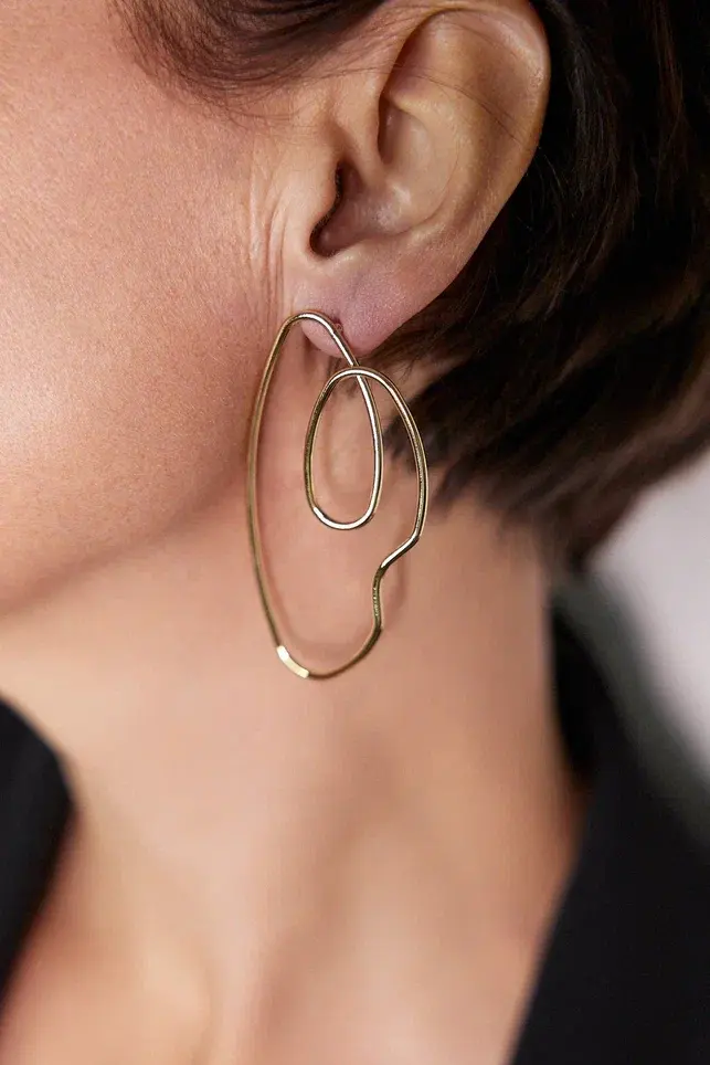 Серьги пусеты тонкие хаотичные линии, оттенок золото