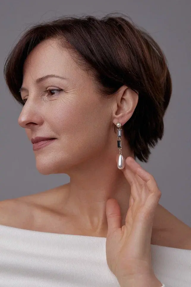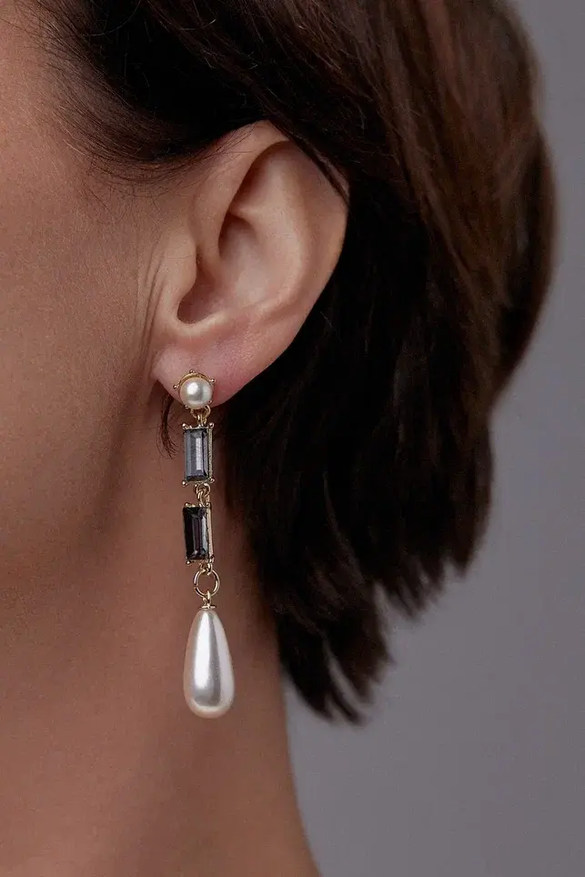Серьги пусеты жемчуг и графитовые кристаллы, оттенок золото