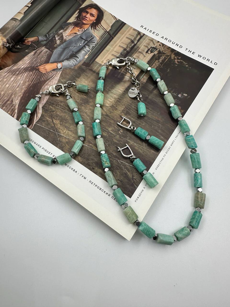 Серьги с амазонитом и гематитом, оттенок серебро