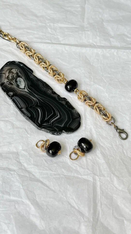 Серьги в оттенках золото и графит с черным жемчугом Майорка. Длина - 3 см. Замок - левербек.