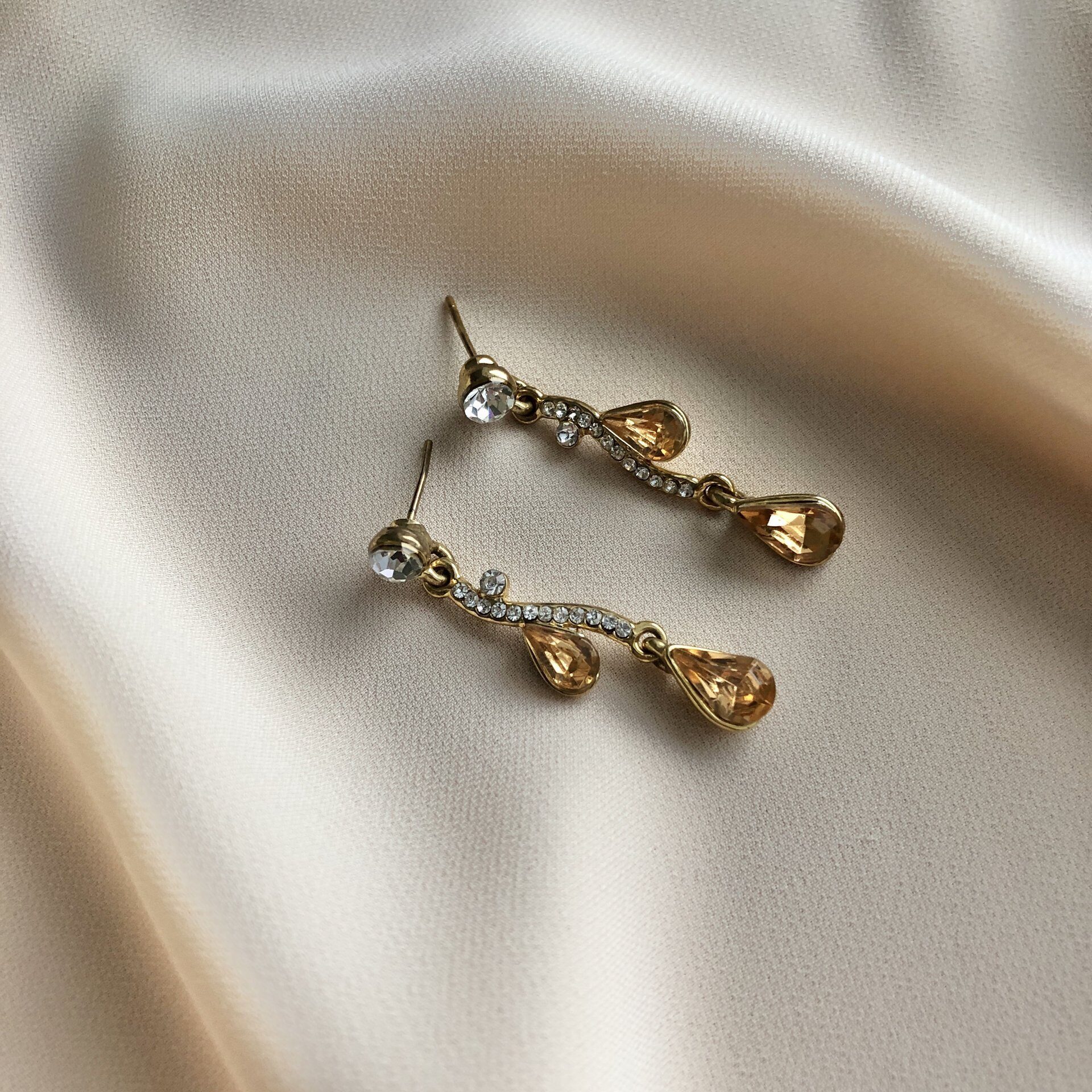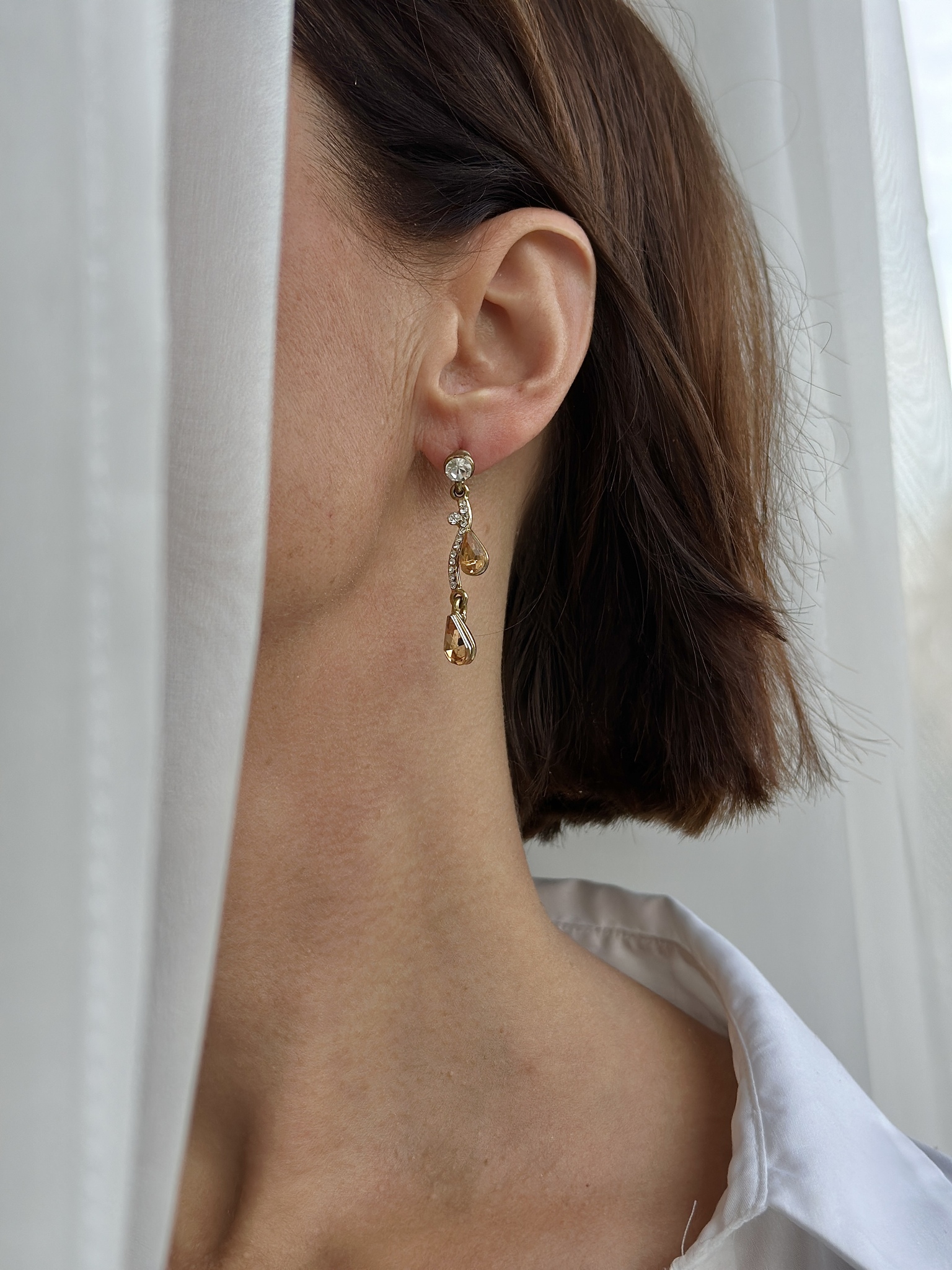 Серьги с желтыми кристаллами-каплями. Пусеты.