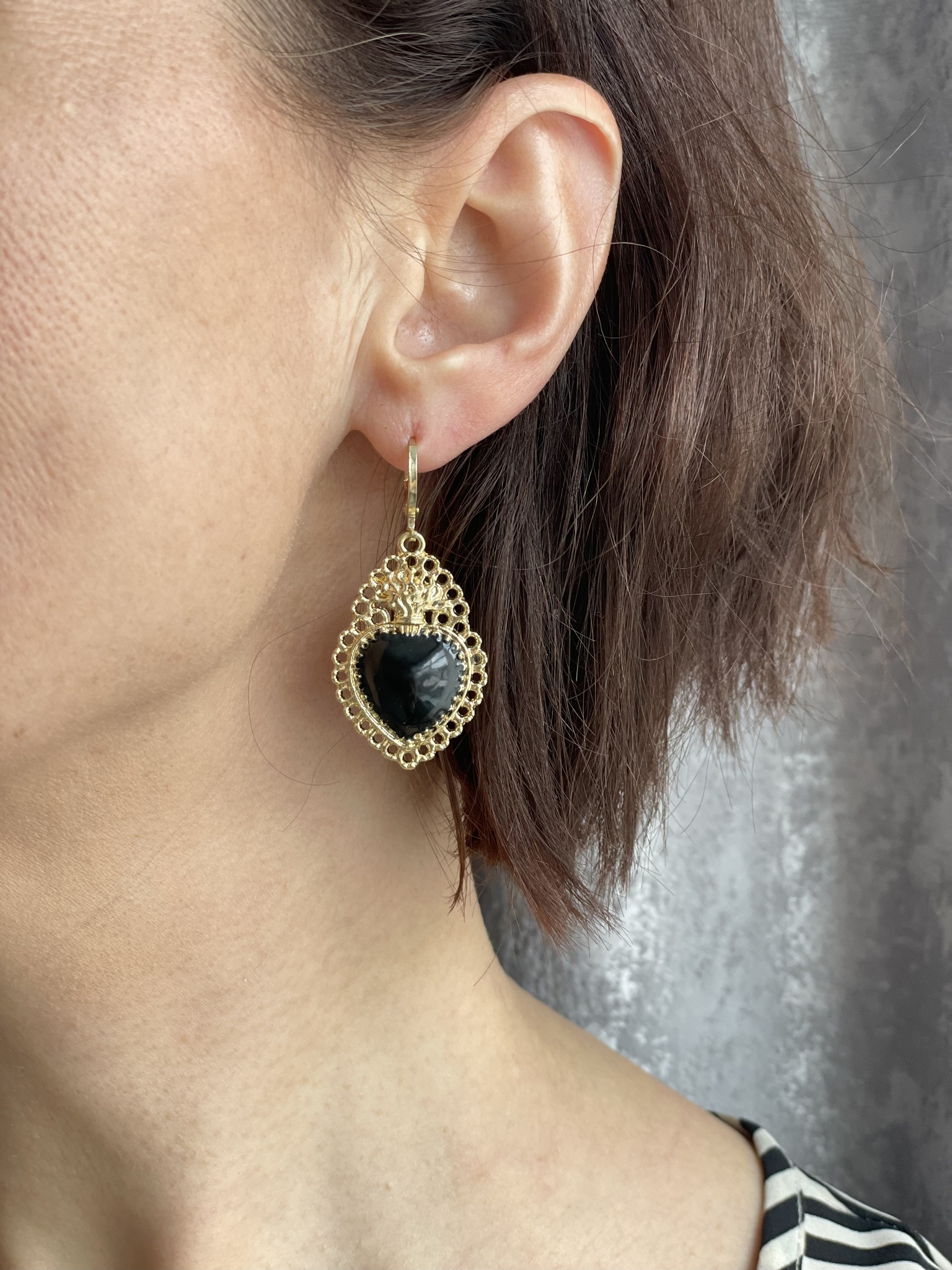 Серьги сердца с черной эмалью, цвет золото, Италия