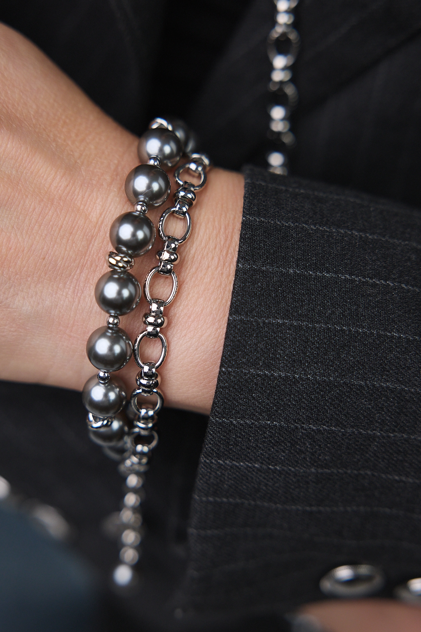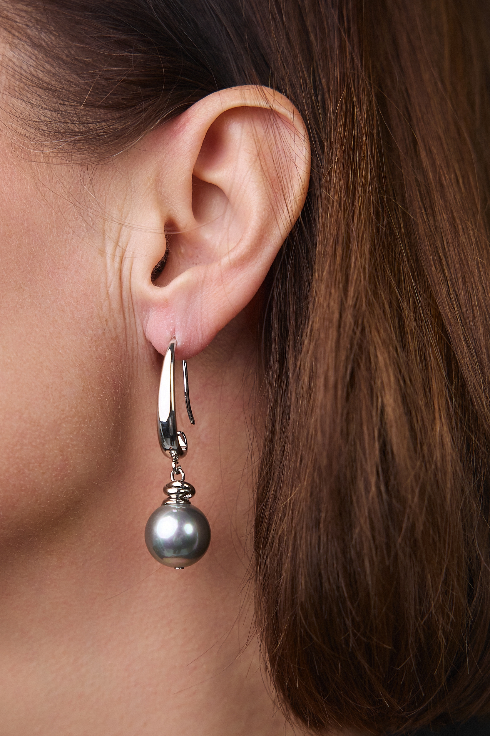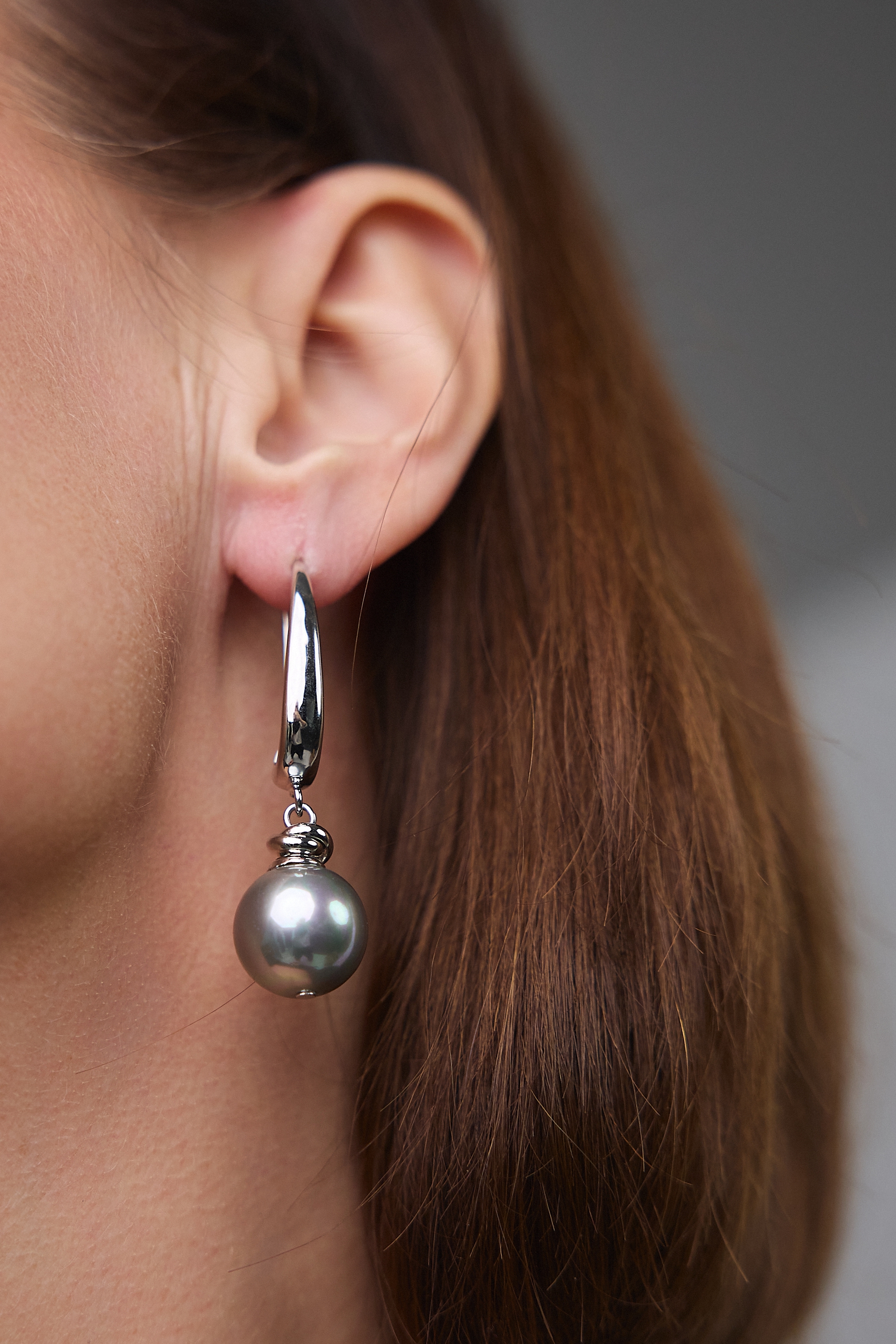 Серьги "Шарлотта" из серого жемчуга на серебряной петле