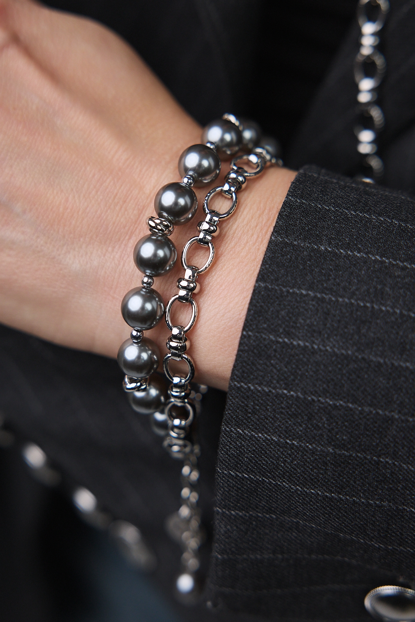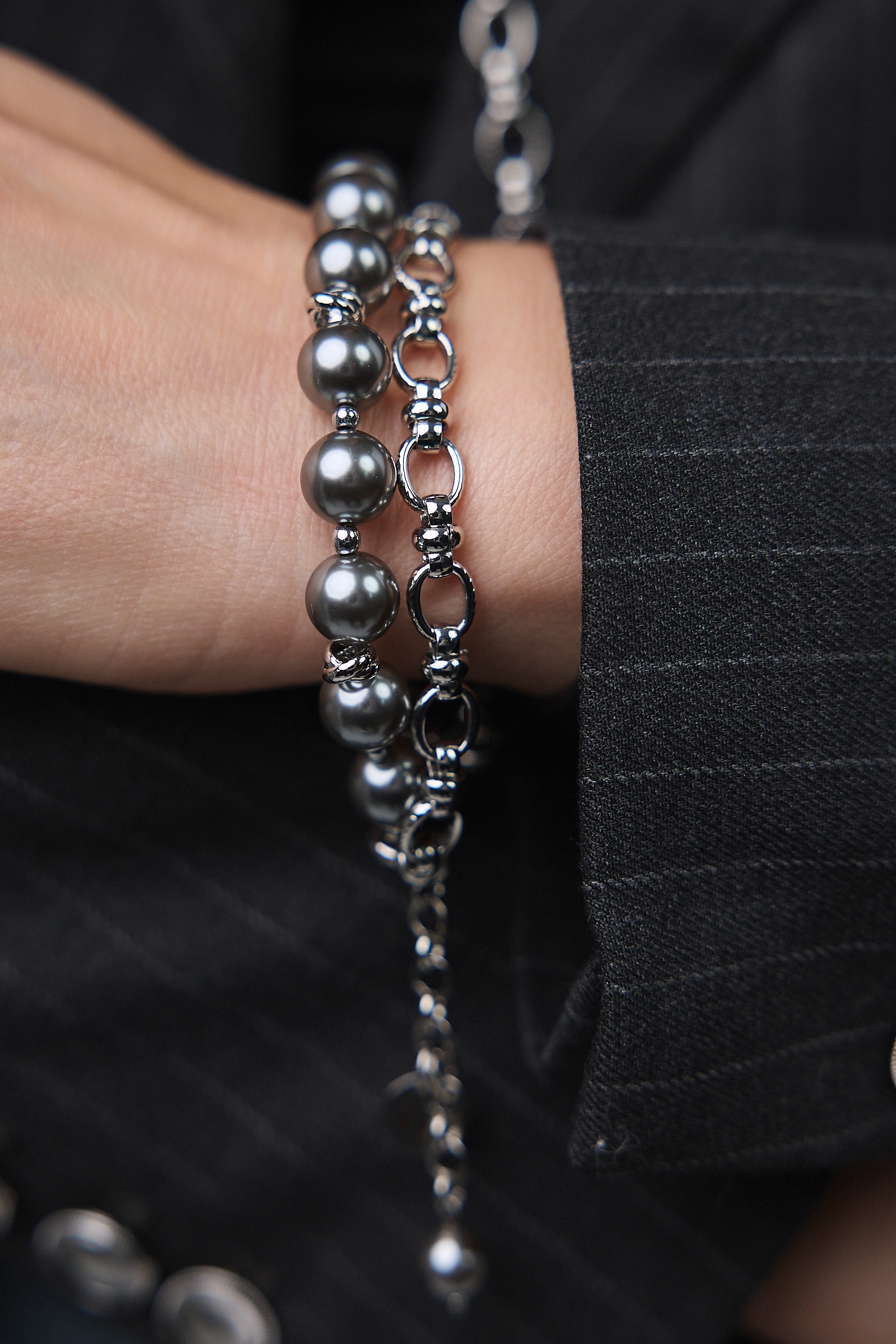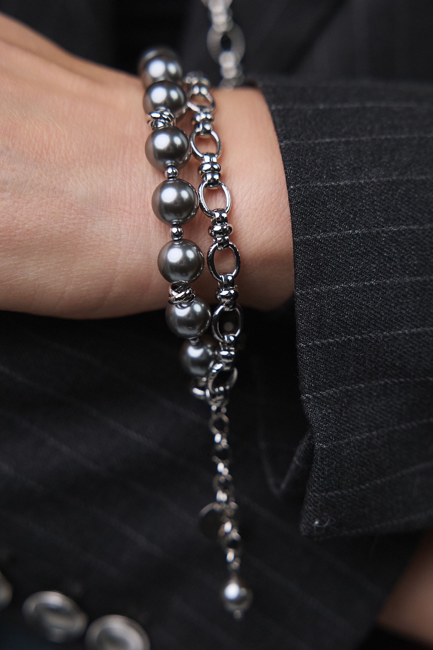 Серьги "Шарлотта" из серого жемчуга на серебряной петле