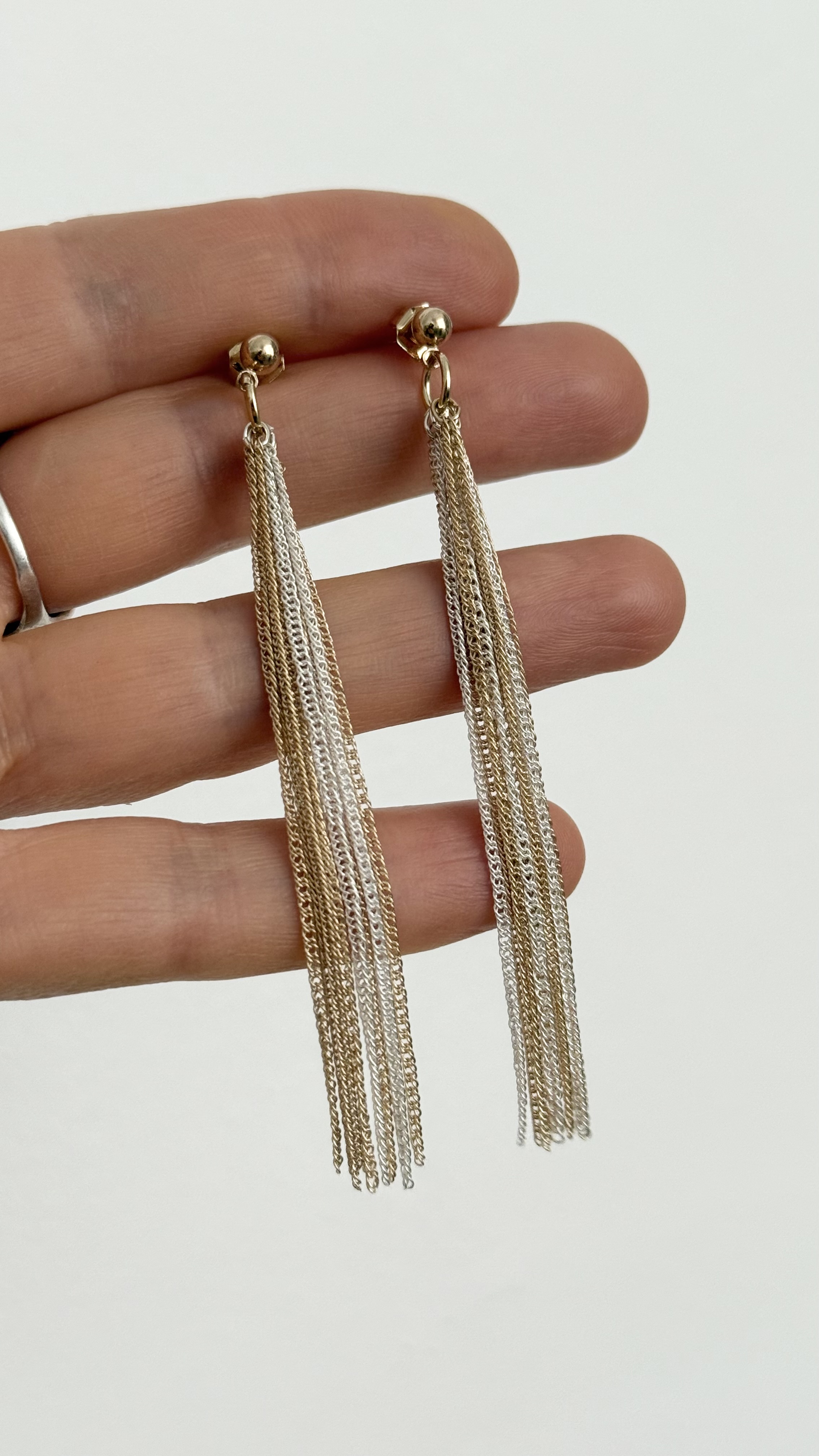 Серьги "Шелк" пусеты из тонких стальных нитей, оттенок бело-золотой.