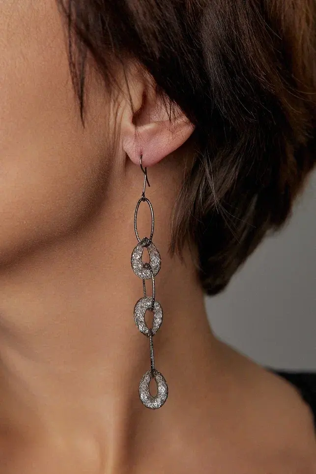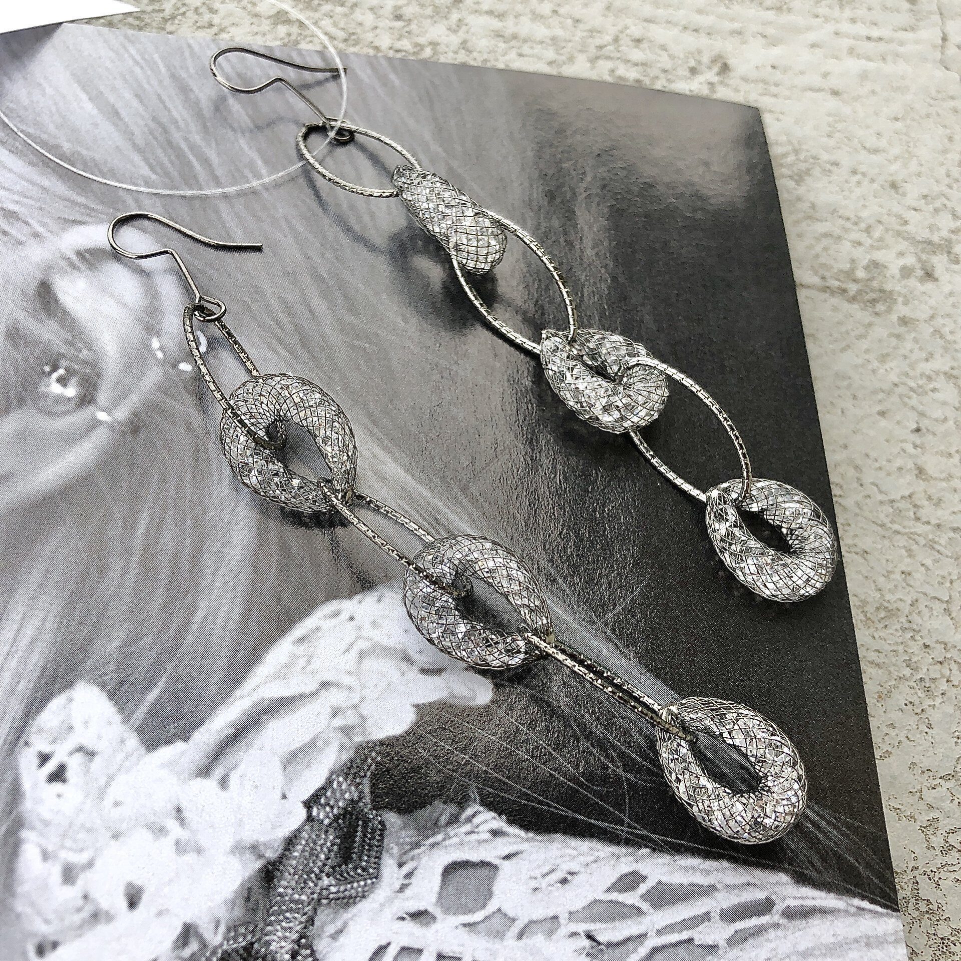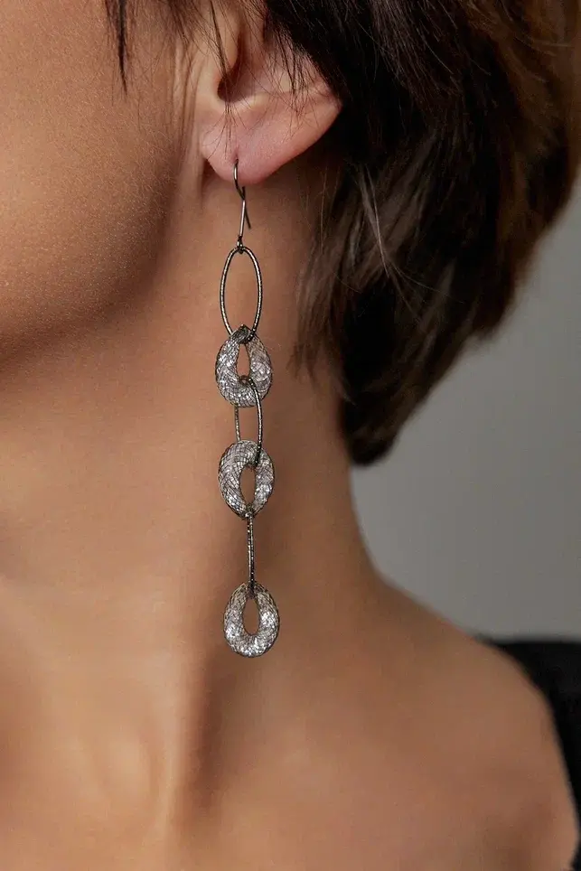 Серьги из бижутерного сплава, ювелирная сетка с кристаллами. Замок петля.