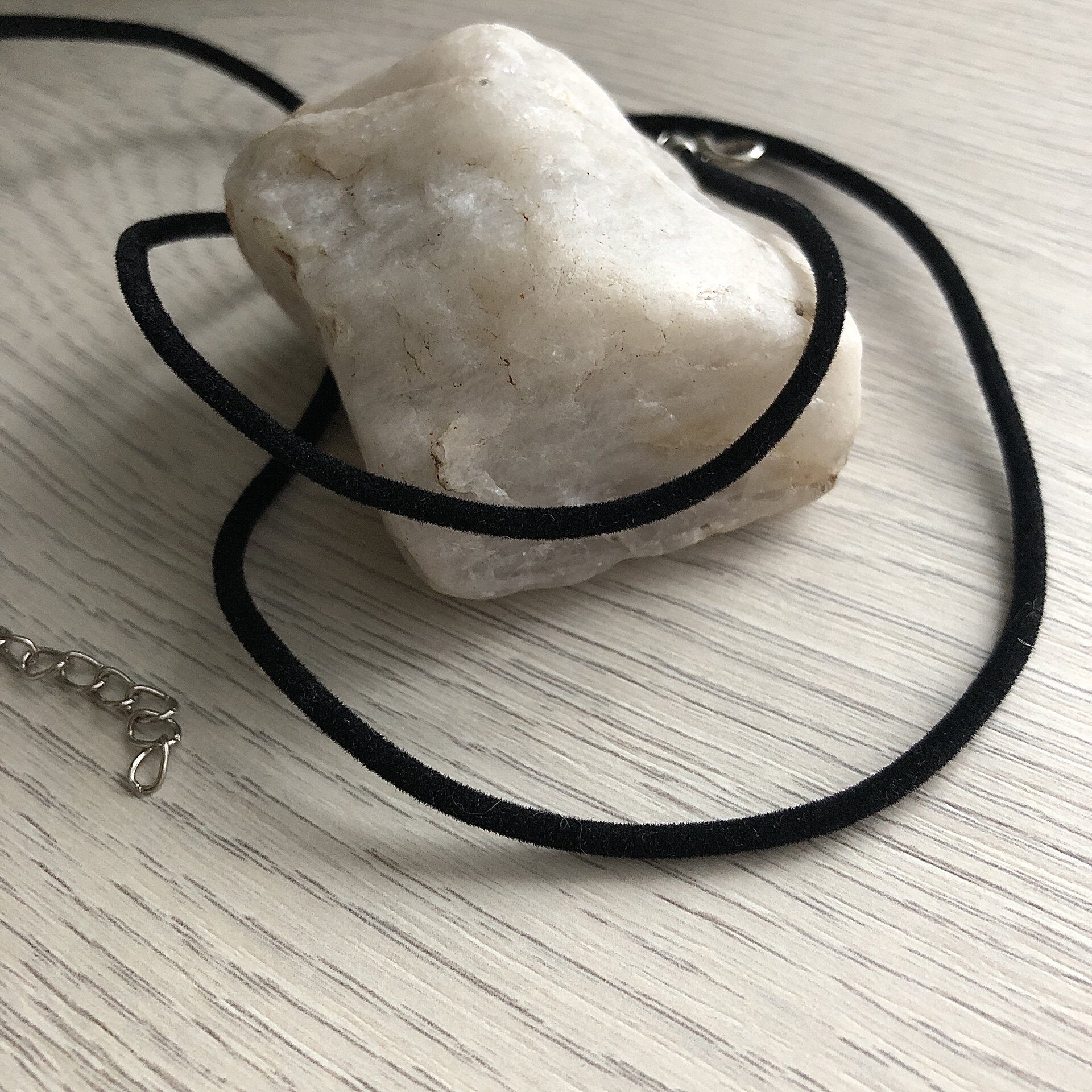 Шнурок замшевый. Цвета черный и коричневый. Оттенок металла - серебро. Длина 62 - 66 см.
