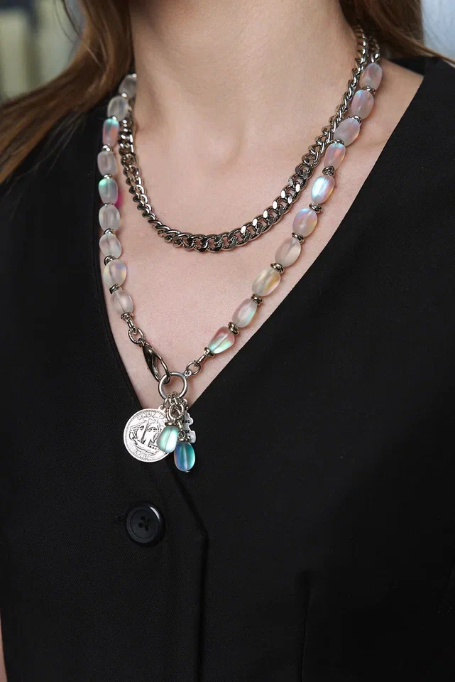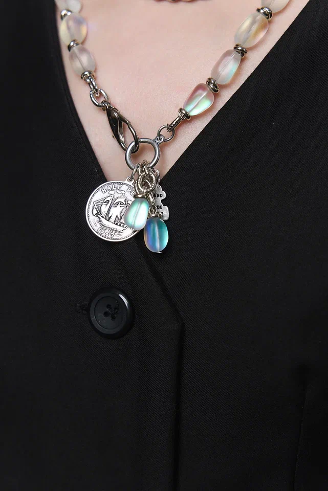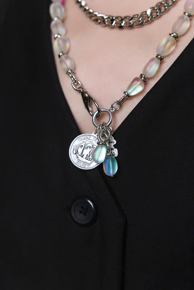 Сотуар цепи и опалы с монетой, оттенок серебро