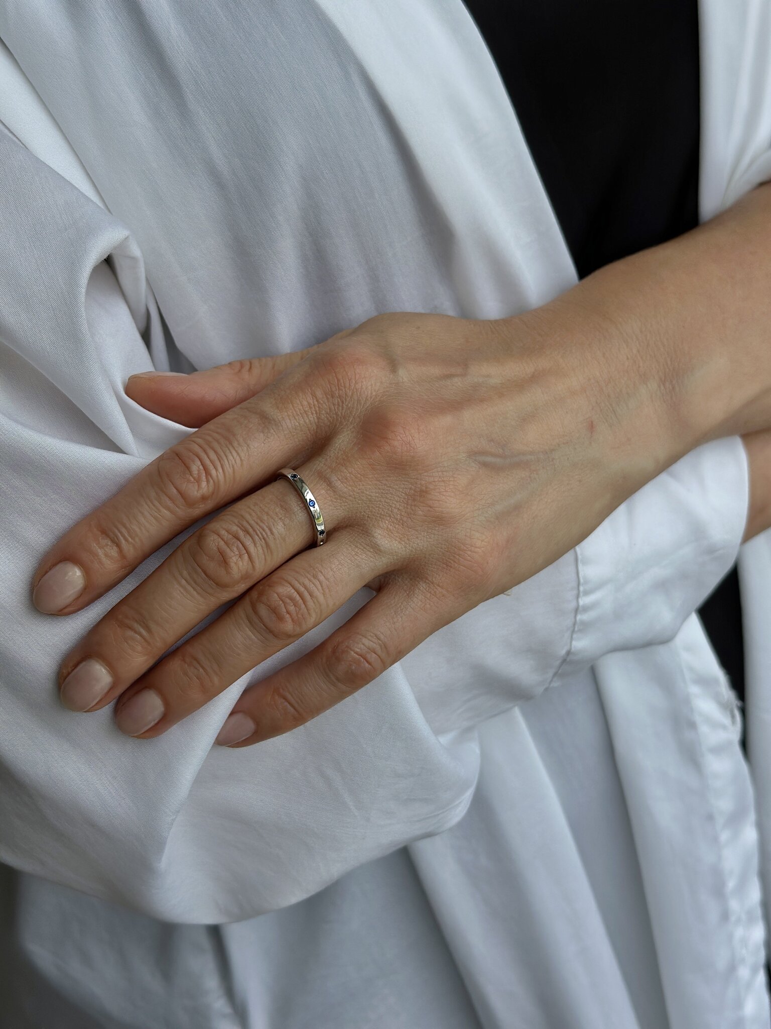 Серебряное кольцо с синими фианитами. Серебро 925. Размер 17.