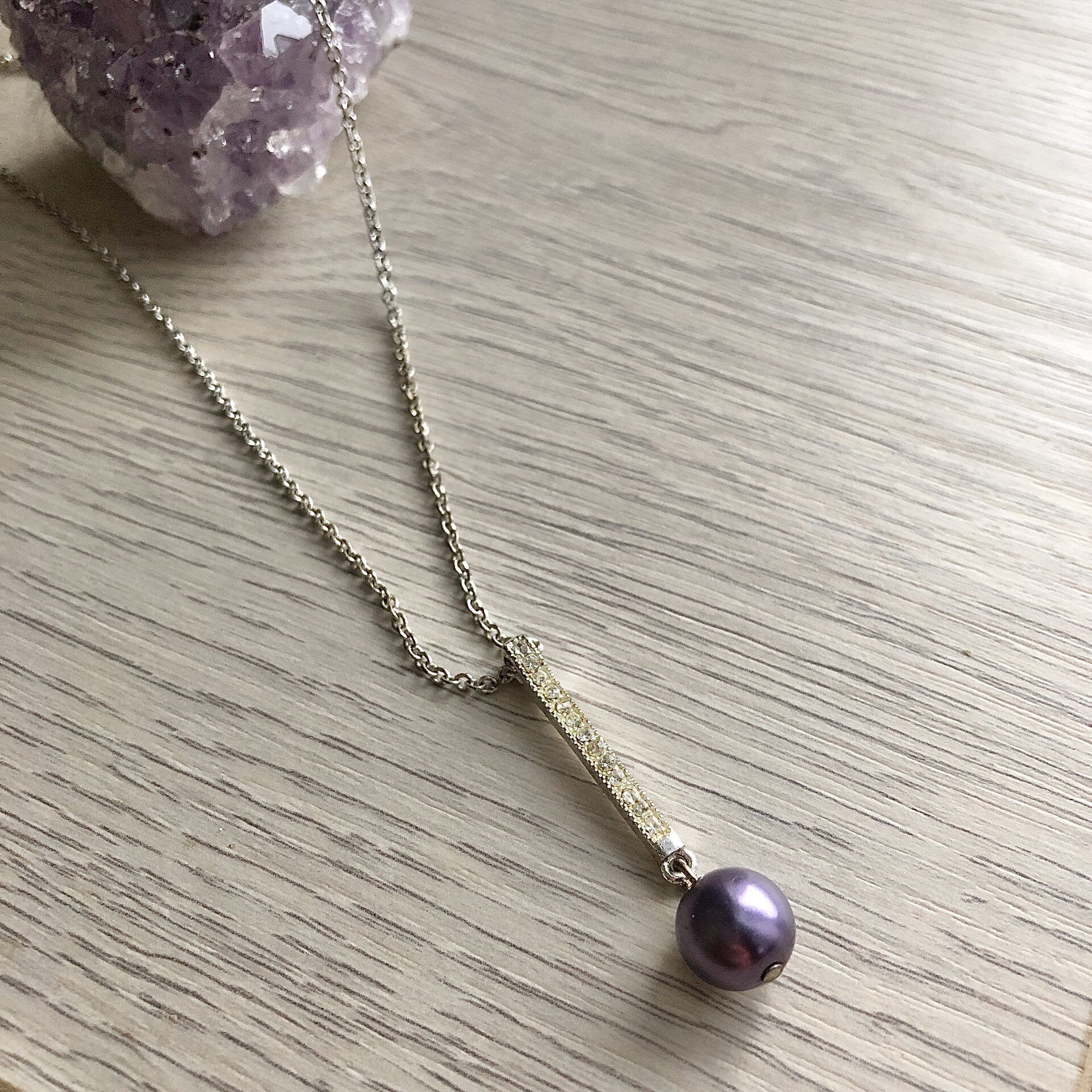 Кулон на цепочке с жемчужиной в сливовом оттенке.